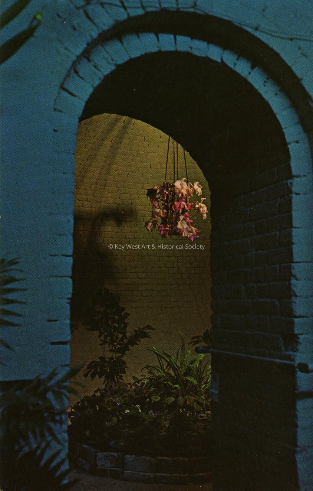 Postcard depicting an orchid plant hanging at Fort West Martello. The description on the verso reads, 'Orchids in Dungeon: Orchids pictured in dungeon of West Martello Fortress at Key West, Fla. during annual Key West Flower Show, held each February. West Martello and East Martello are two fortresses built to protect Florida straits at Key West prior to Civil War.'Subject Place
