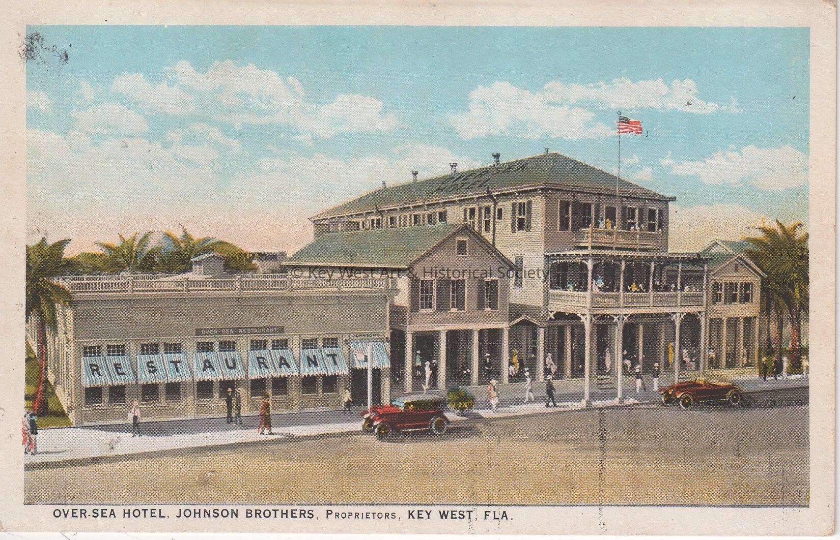 Postcard depicting a hotel and restaurant. The caption reads, ‘Over-sea Hotel, Johnson Brothers, Proprietors, Key West, Florida.’Collection