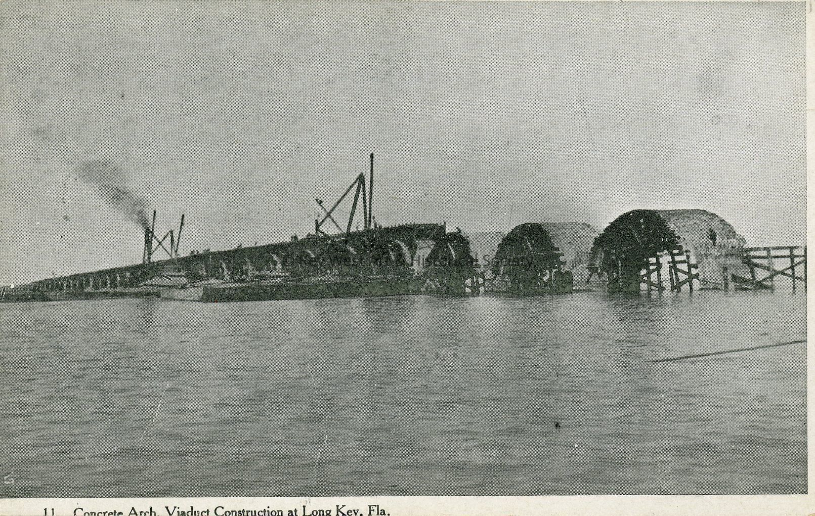 Postcard depicting the construction of the Florida East Coast Railway's Oversea Extension, specifically the concrete arches under construction across Long Key. Number 11 of the F.E.C. Extension Series.Subject Person/Organization