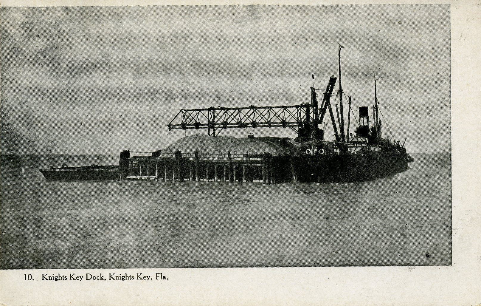 Postcard depicting the construction of the Florida East Coast Railway's Oversea Extension, specifically the construction of Knights Key Dock. Number 10 of the F.E.C. Extension Series.Subject Person/Organization