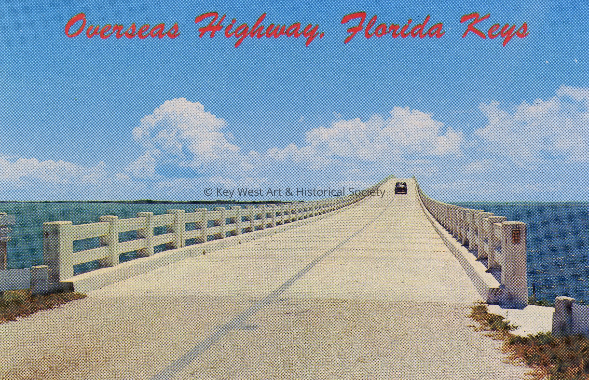 Postcard of one of the Overseas Highway bridges. Caption on verso reads, 'Overseas Highway to Key West, Florida.'Collection