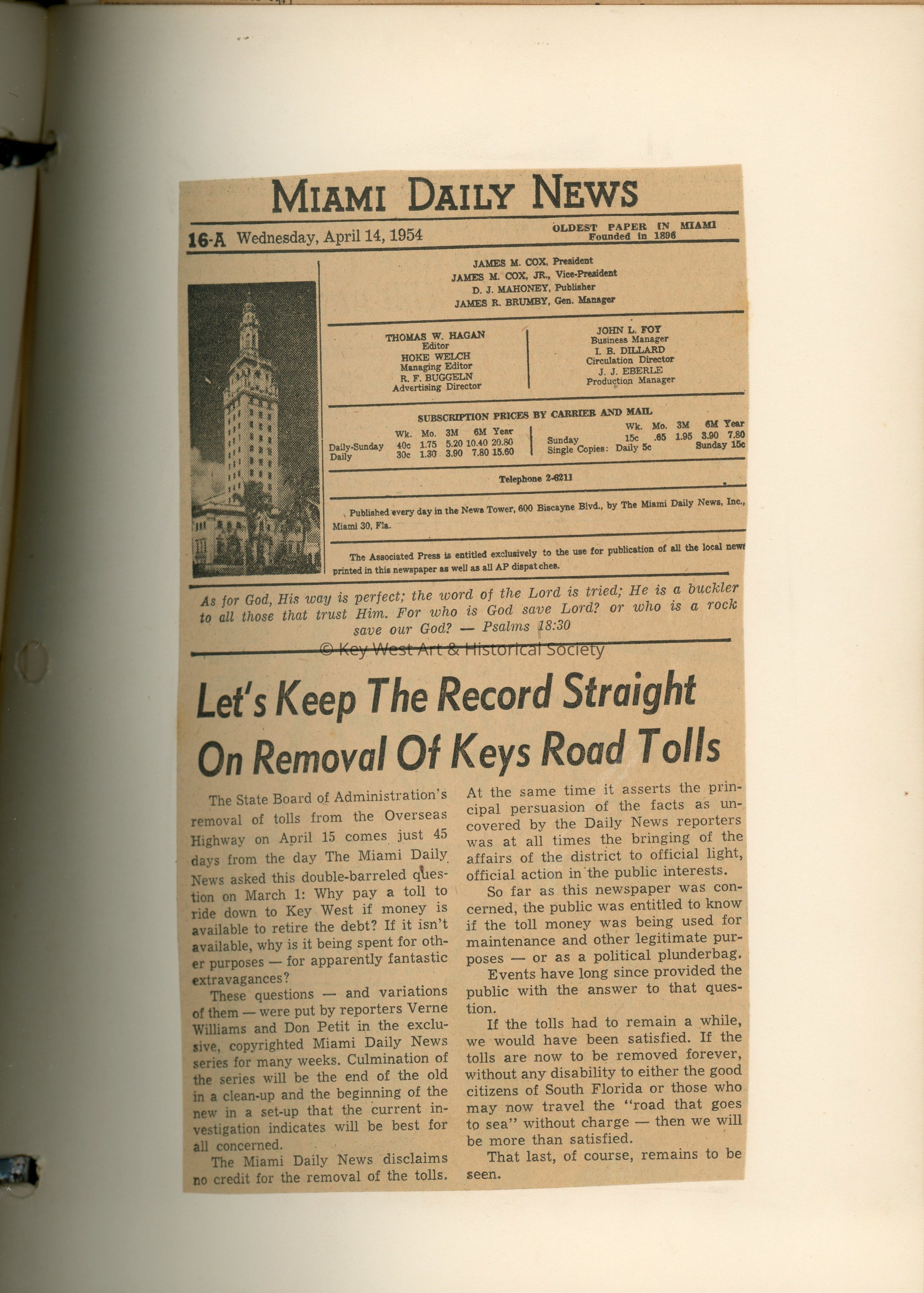 Scrapbook with newspaper clippings, correspondence, photographs, and postcards related to the Overseas Highway and Florida East Coast Railway.Collection