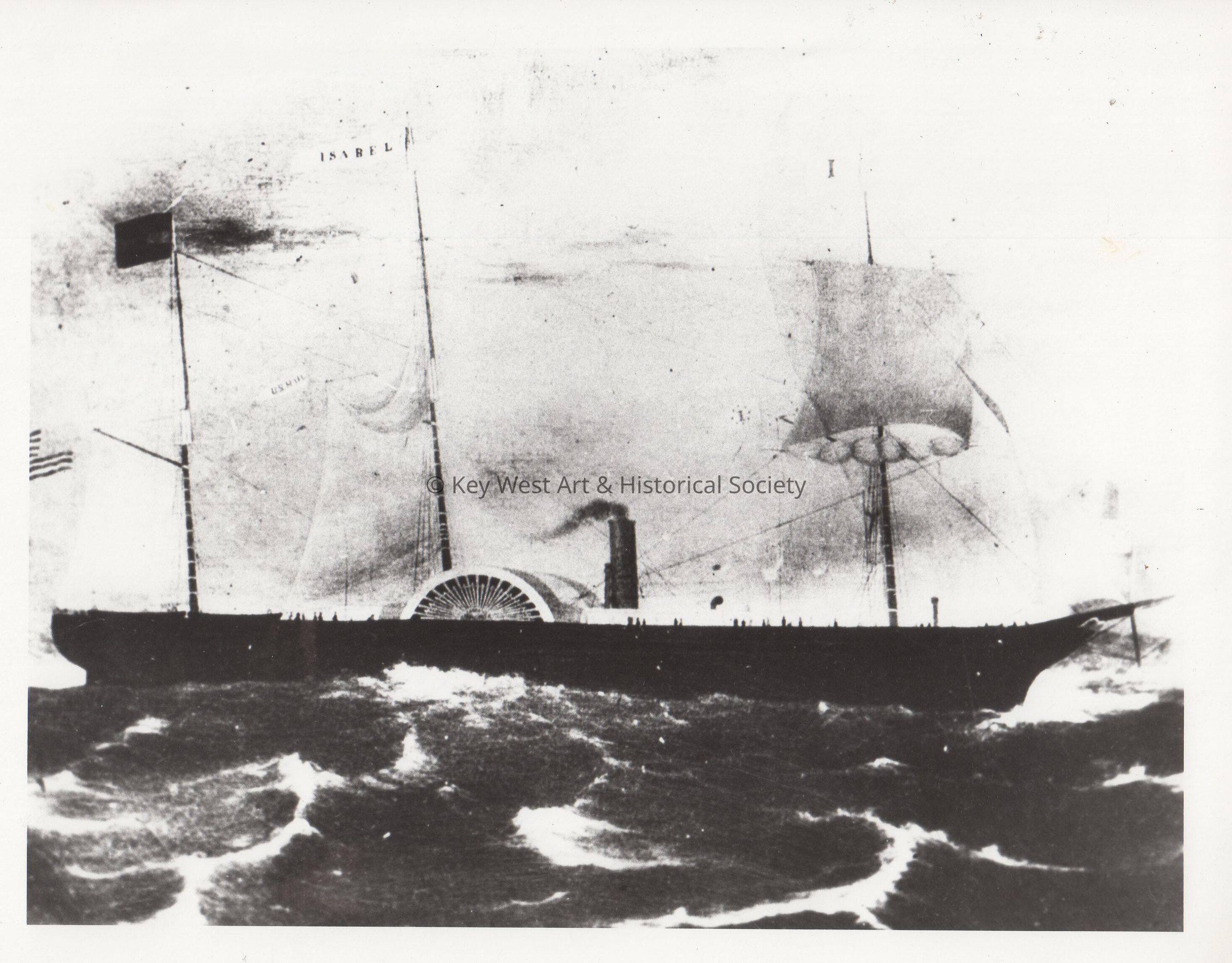 Black and white photograph of an oil painting of the paddle steamer ISABEL.Collection