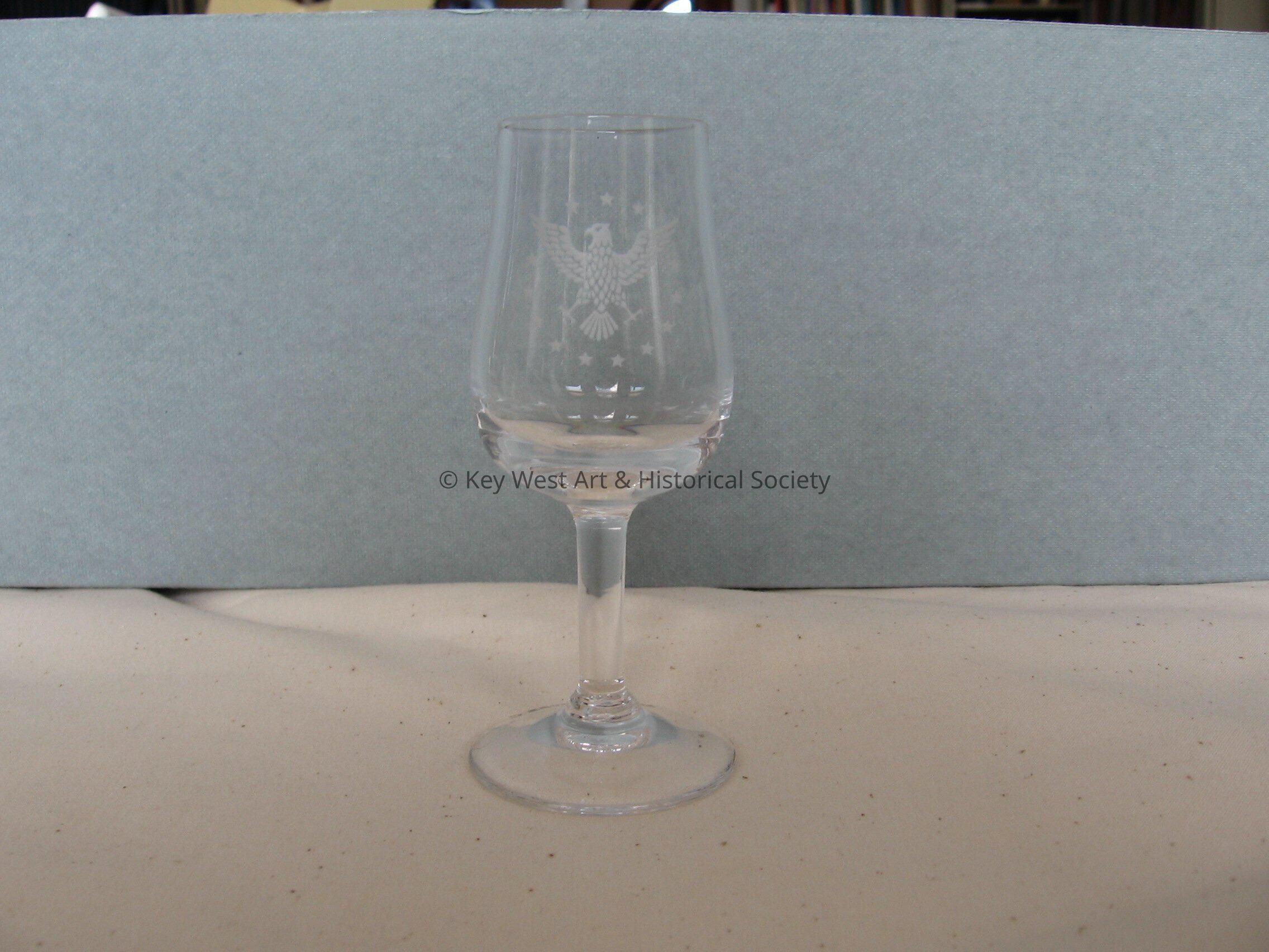 Pan American Airways cordial glass with eagle and stars etched on the side.