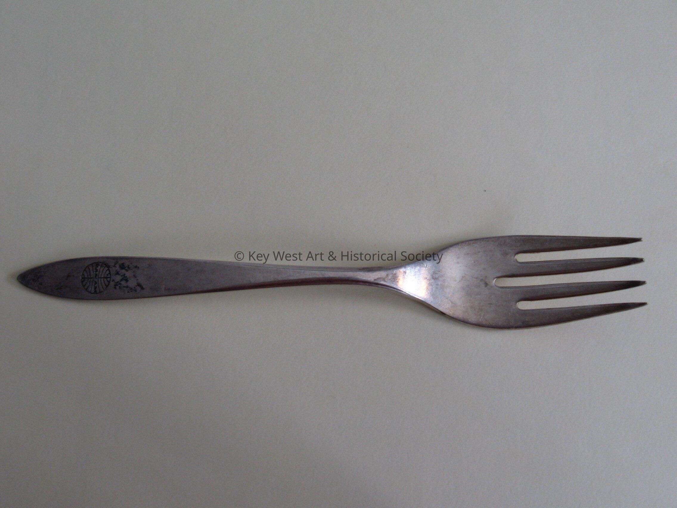 Stainless Steel fork with Pan Am logo on the handle used onboard during service.