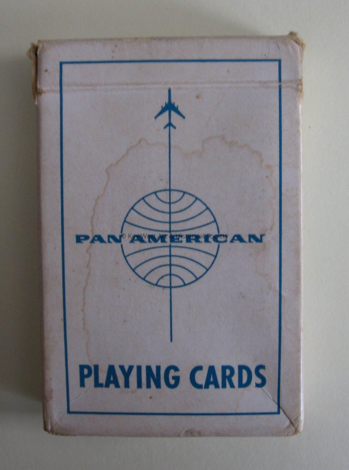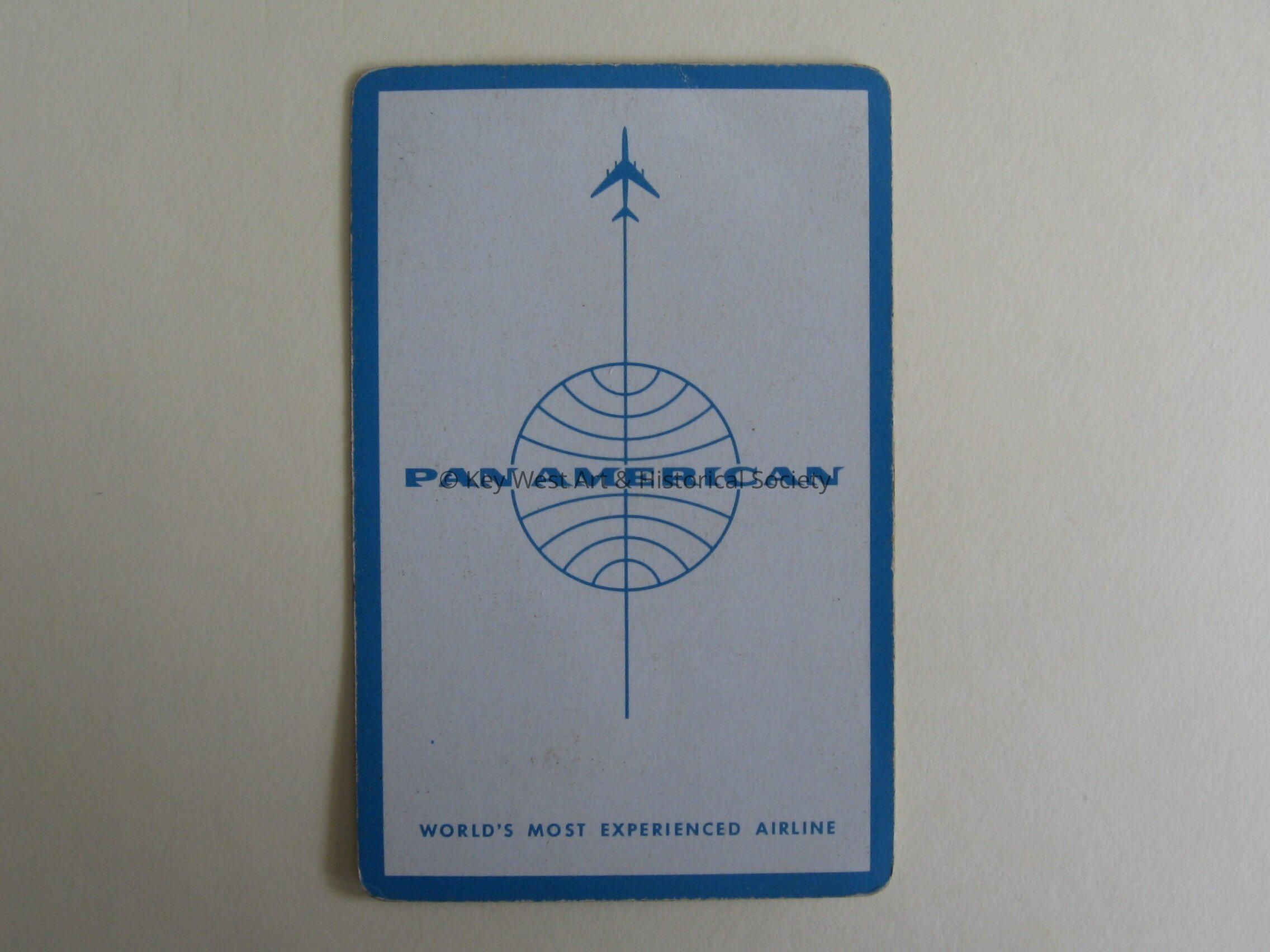 Deck of Pan Am playing cards with Pan American logo. Cards come with original box.
