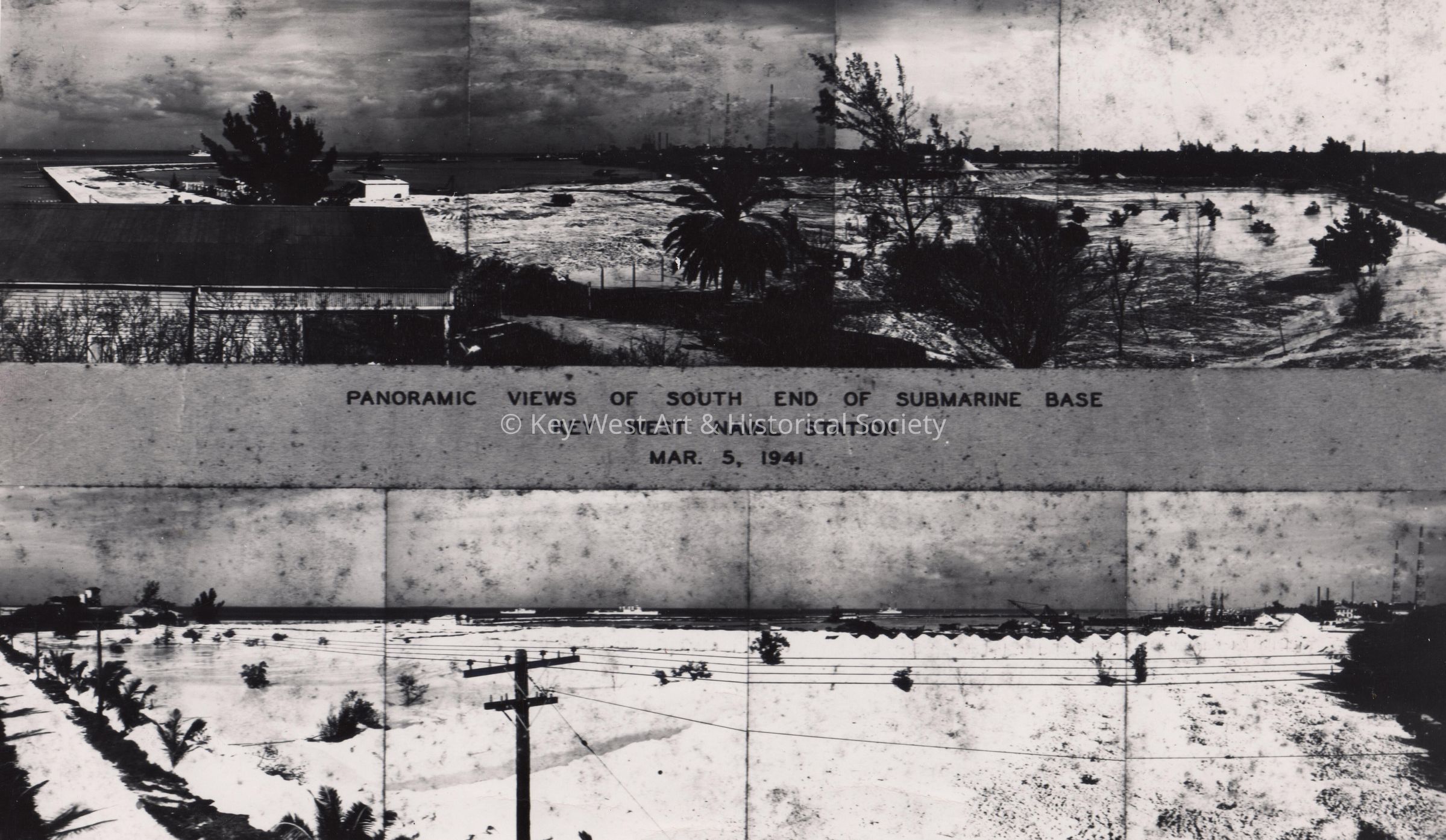 Black and white panoramic views of the south end of the Naval Submarine Base at Naval Station Key West.