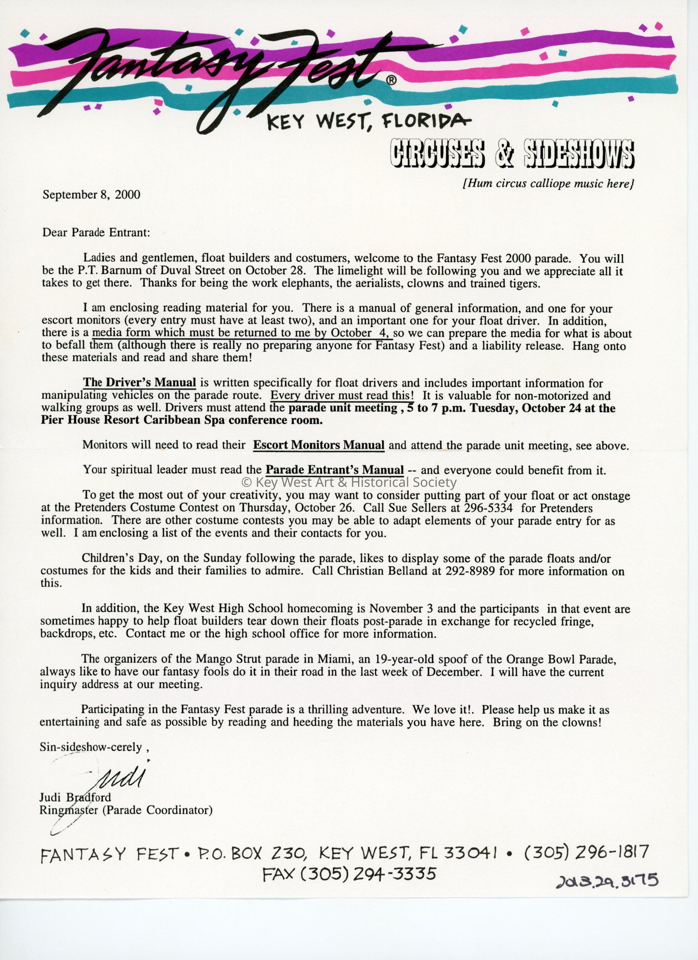 Parade entrants' manual and packet.Entry/Object ID
