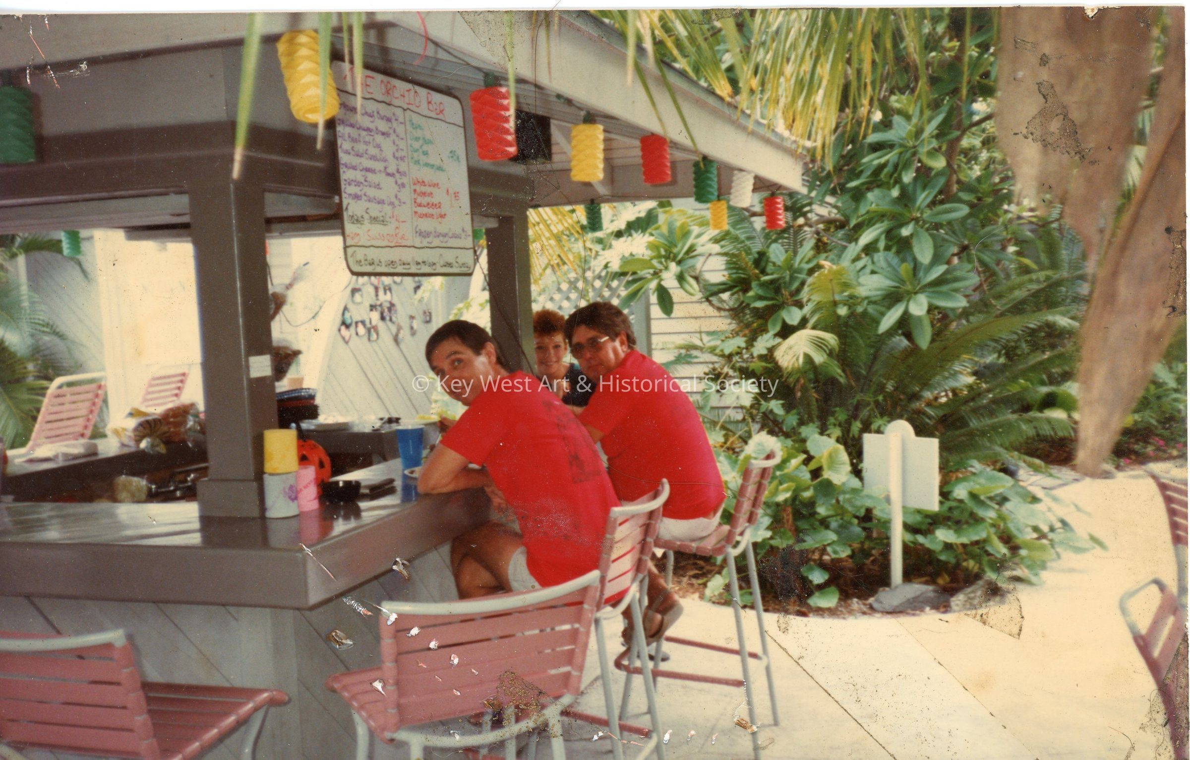 Three (3) people sitting at what is ostensibly the Orchid Bar in Key West.