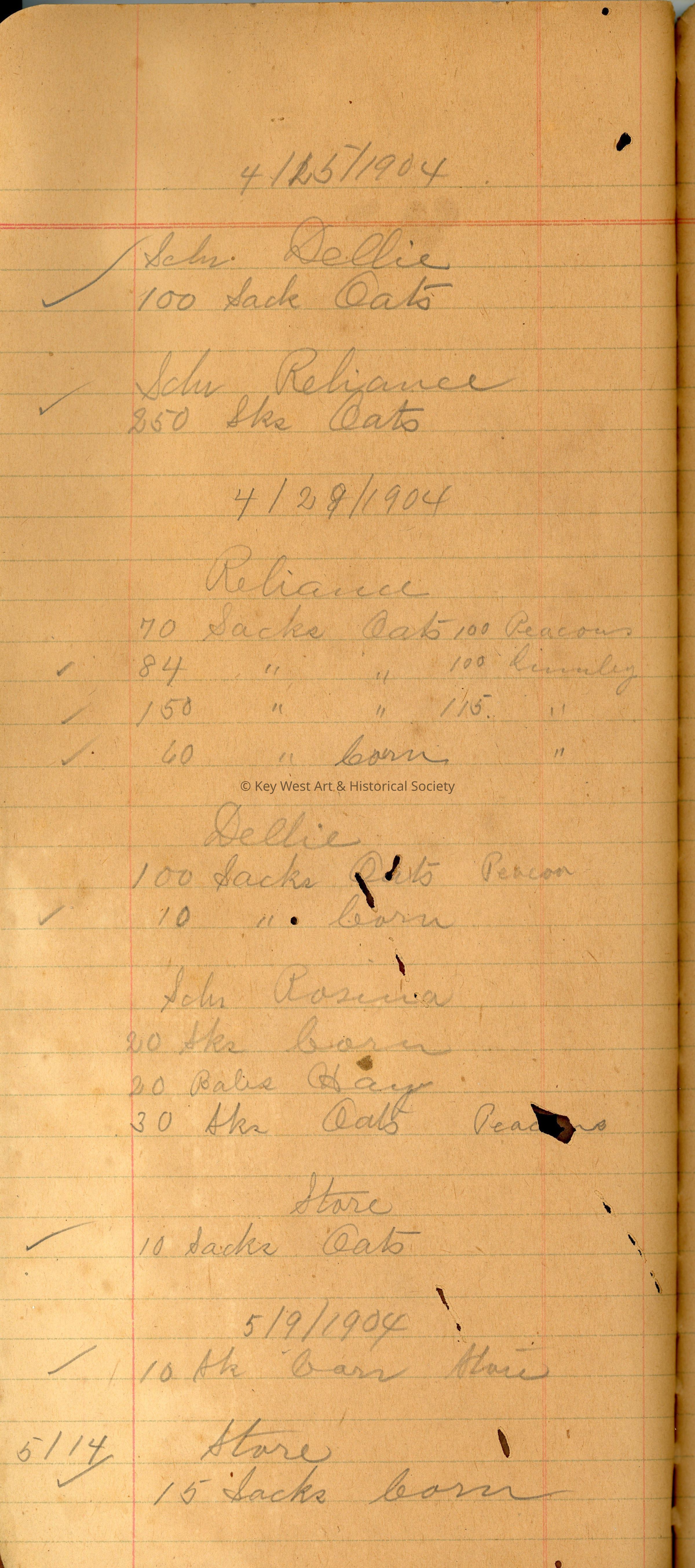 Peacon's Grocery Store Ledger: © Key West Art & Historical Society