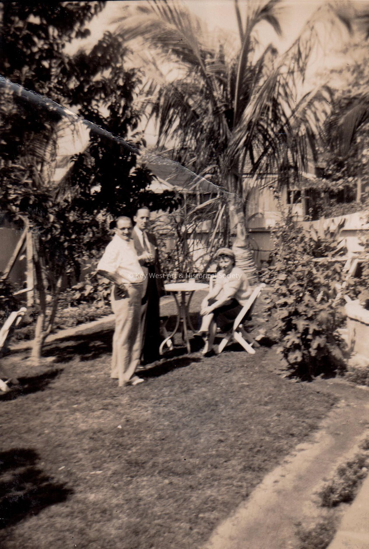Two unknown men and a woman at outside table at Pena's Garden of Roses Night Club, Key West.Collection