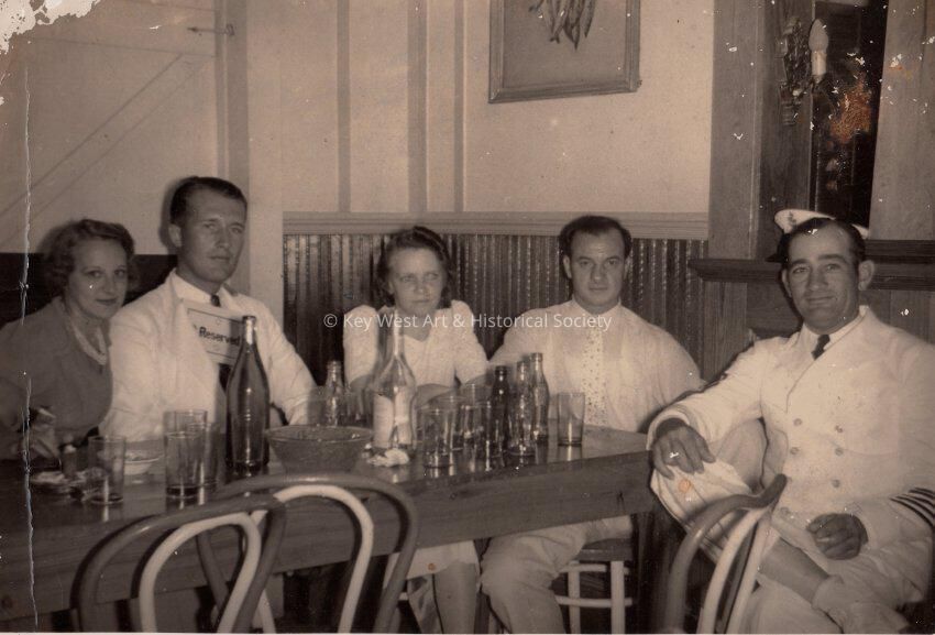 Three men and 2 women at a table at Pena's Garden of Roses Night Club, Key West.Collection