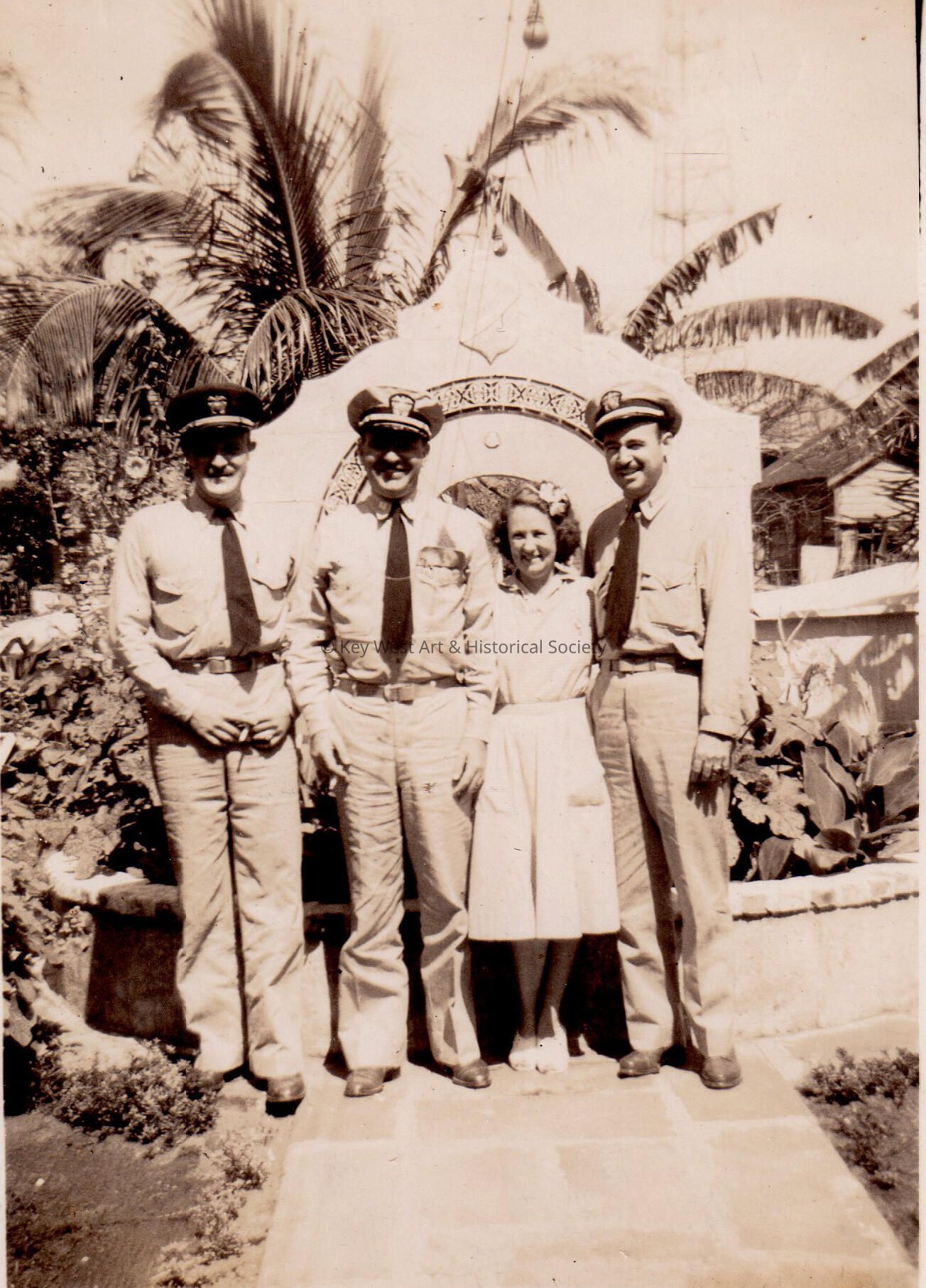 Three military men and a woman outside at Pena's Garden of Roses Night Club, Key West.Collection