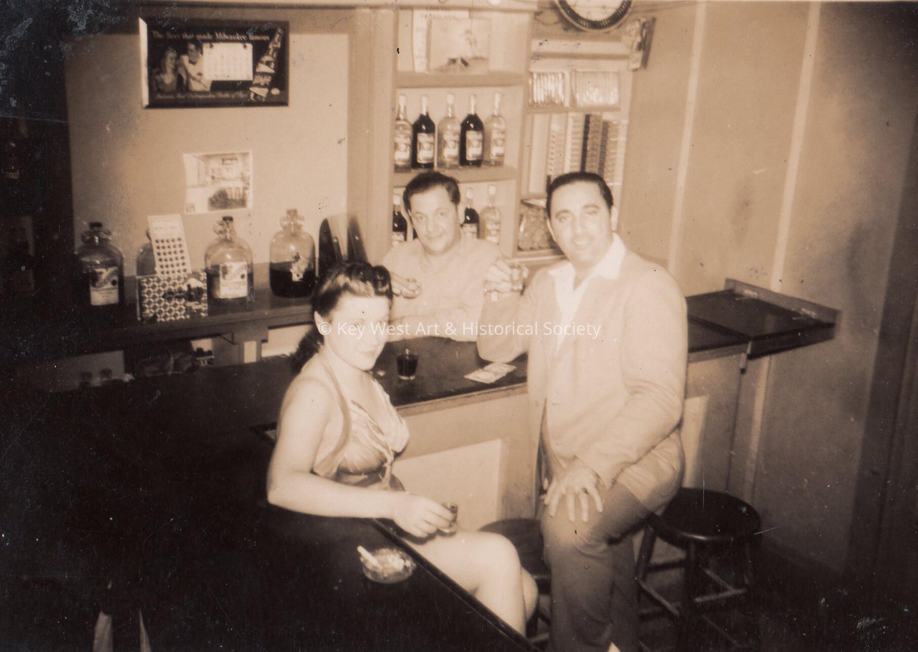 Bartender, man and woman at bar at Pena's Garden of Roses Night Club, Key West.Collection