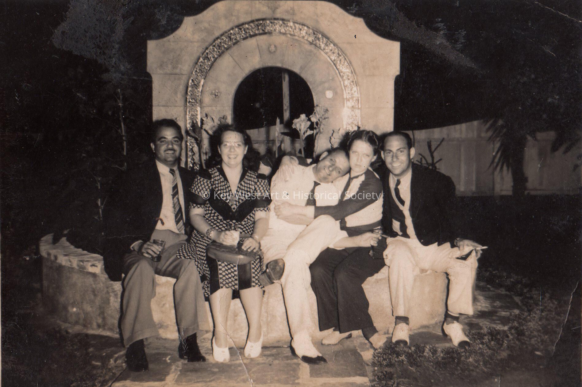 Three unknown men and two women outside at Pena's Garden of Roses Night Club, Key West.Collection
