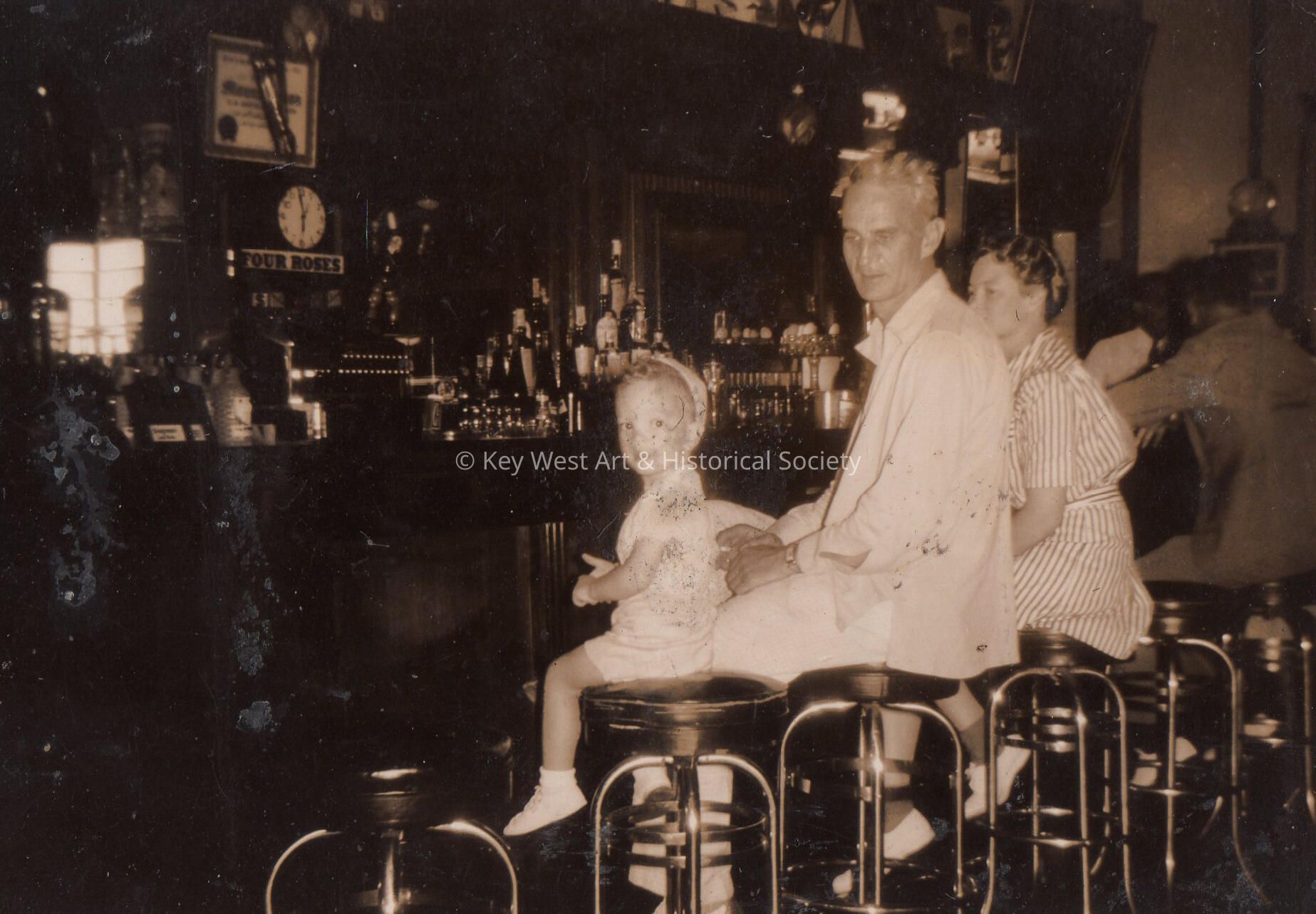 Unknown man, woman, and child at bar at Pena's Garden of Roses Night Club, Key West.Collection