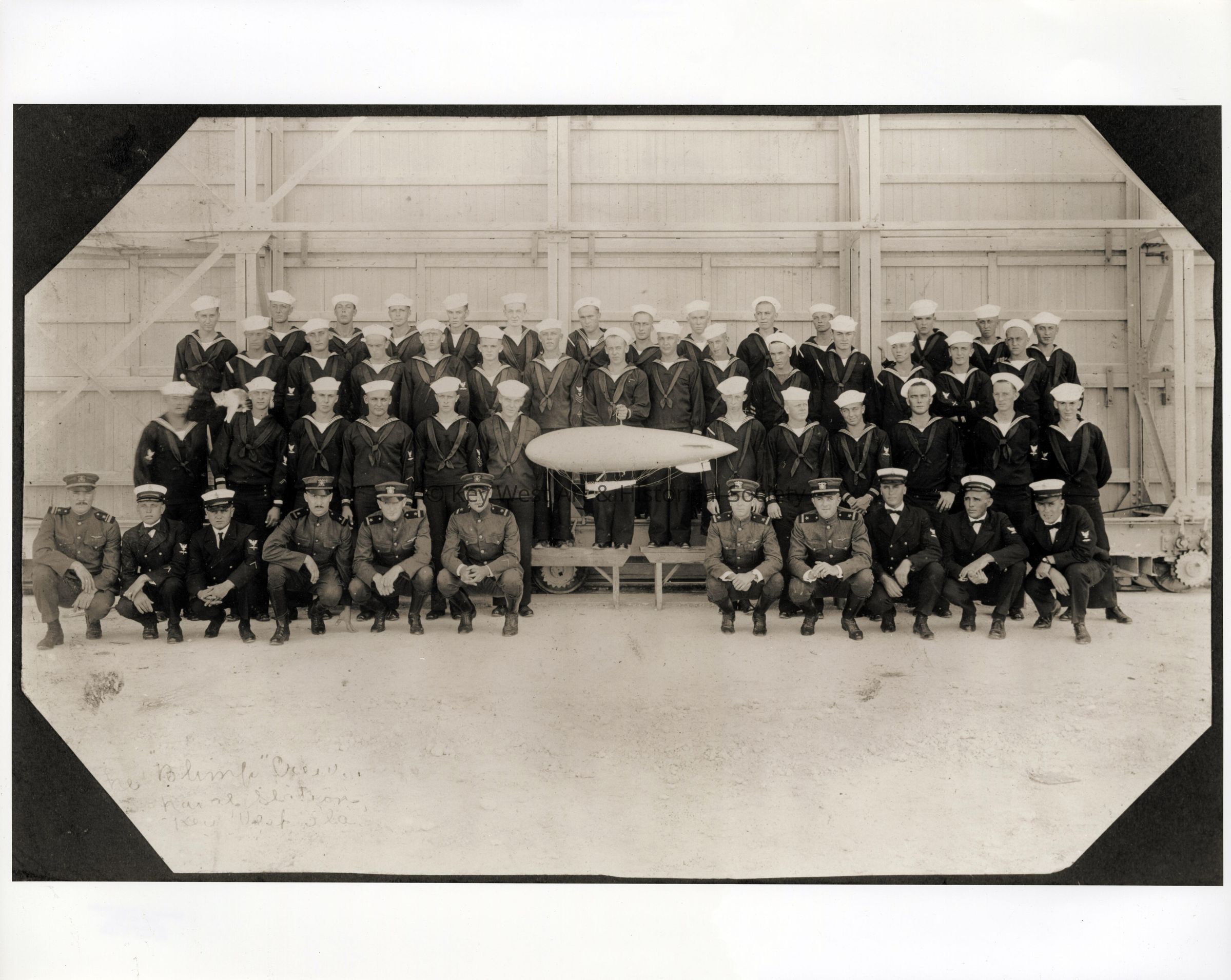 Black and white photograph of a U.S. Navy blimp squadron at Naval Air Station Key West during World War I.