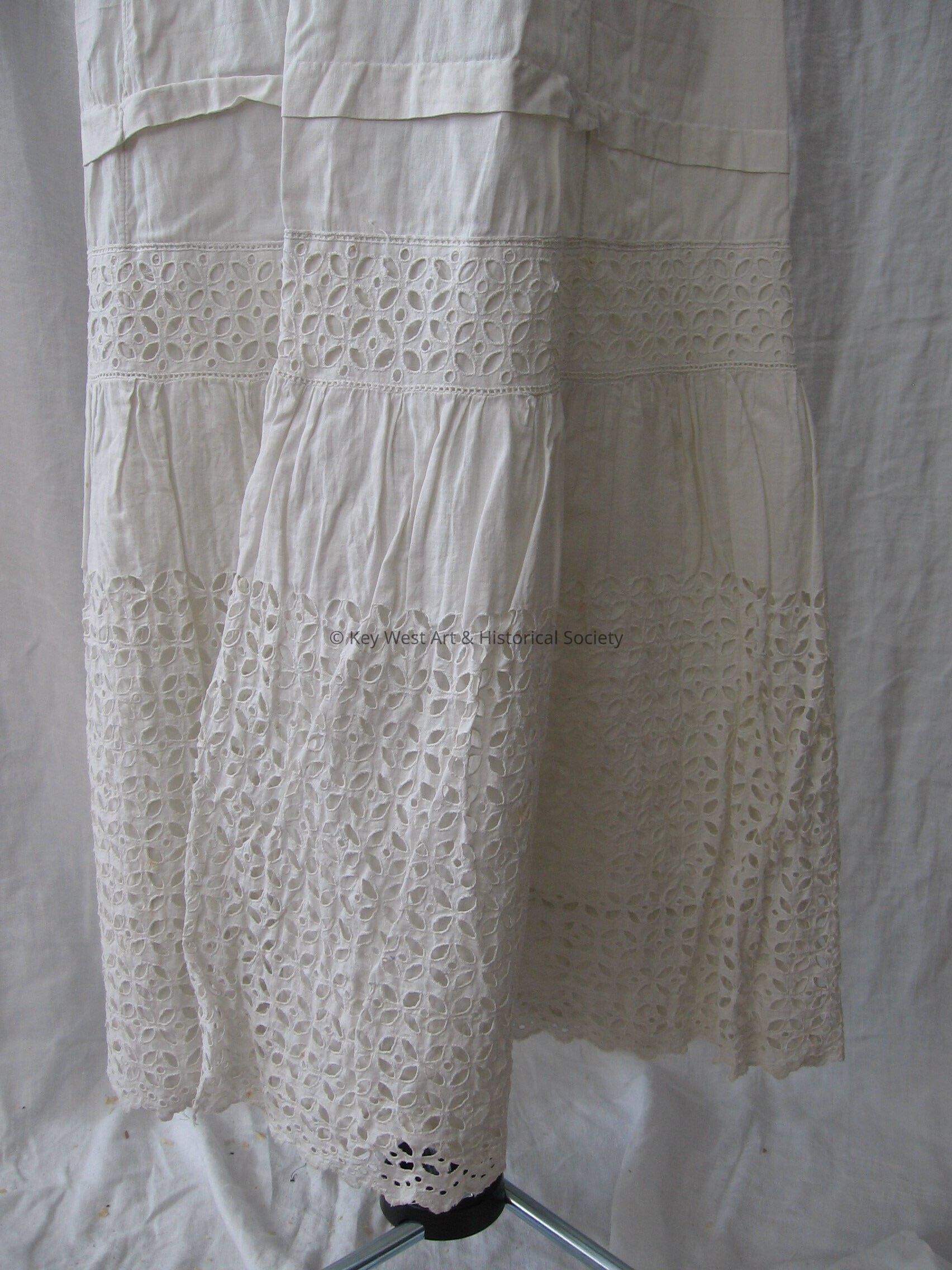 White skirt slip with a eyelet embroidery design on the bottom of the skirt.