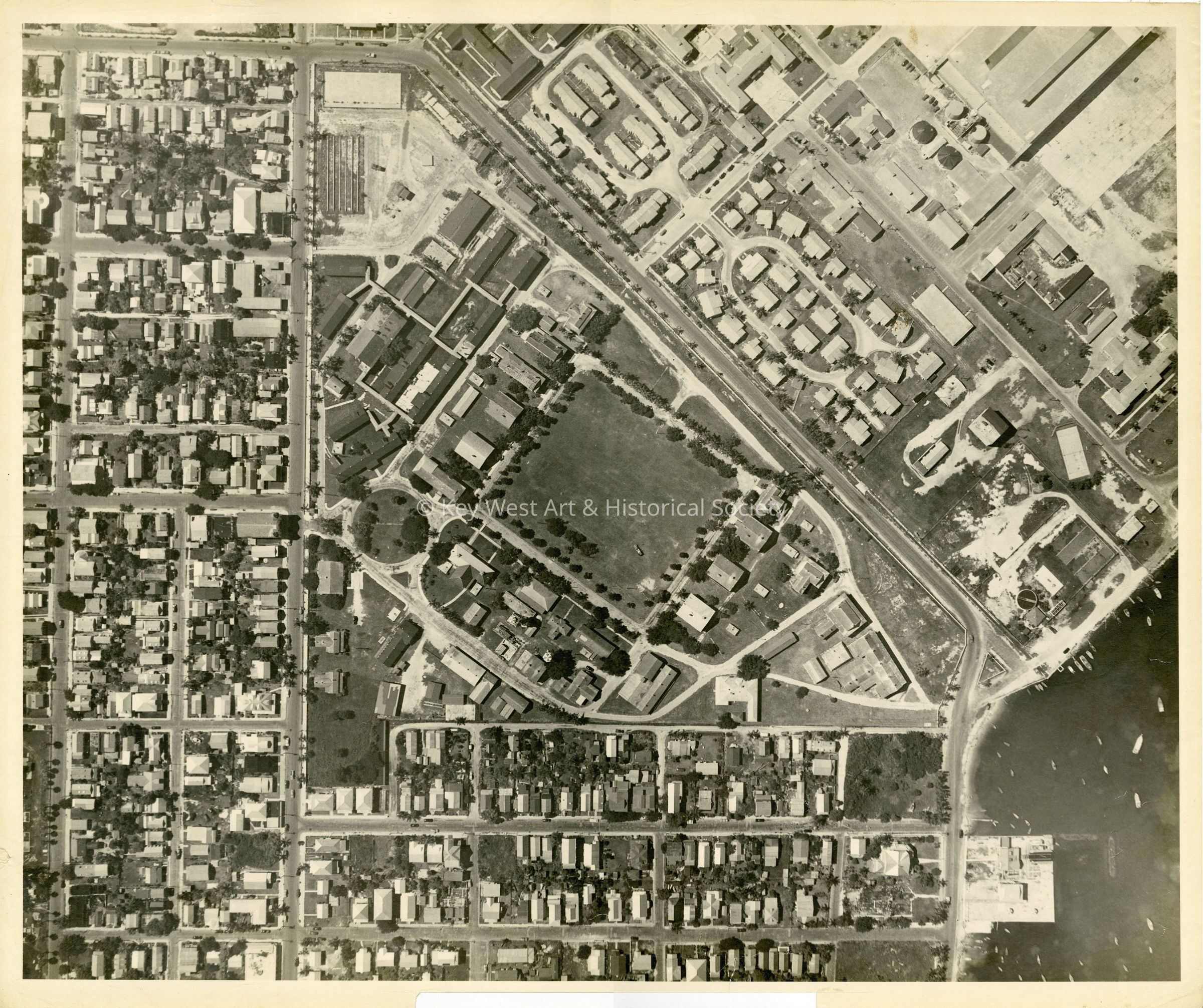 Black and white photograph of the US Army Barracks near Garrison Bight. Present-day site of Peary Court.