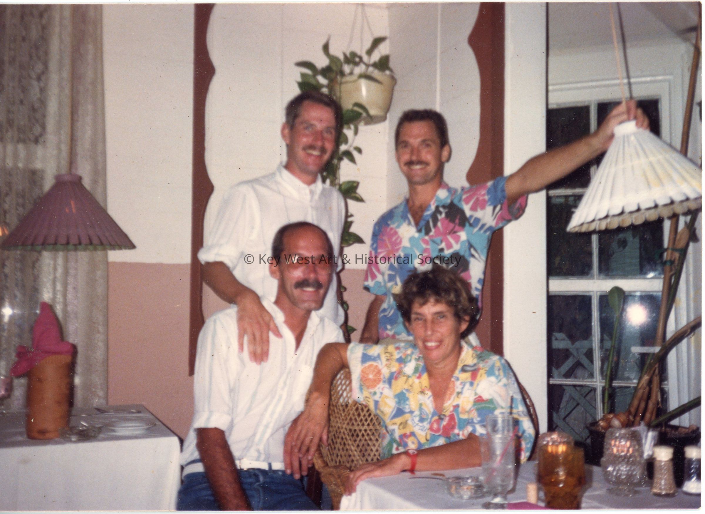 Nancy Loewy and the serving staff of the Pigeon House Patio Restaurant and Bar formerly located at 301 Whitehead Street. Shown are Richie, Keith, Nancy, and Stephen on July 12, 1989.Photograph Details