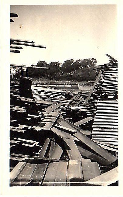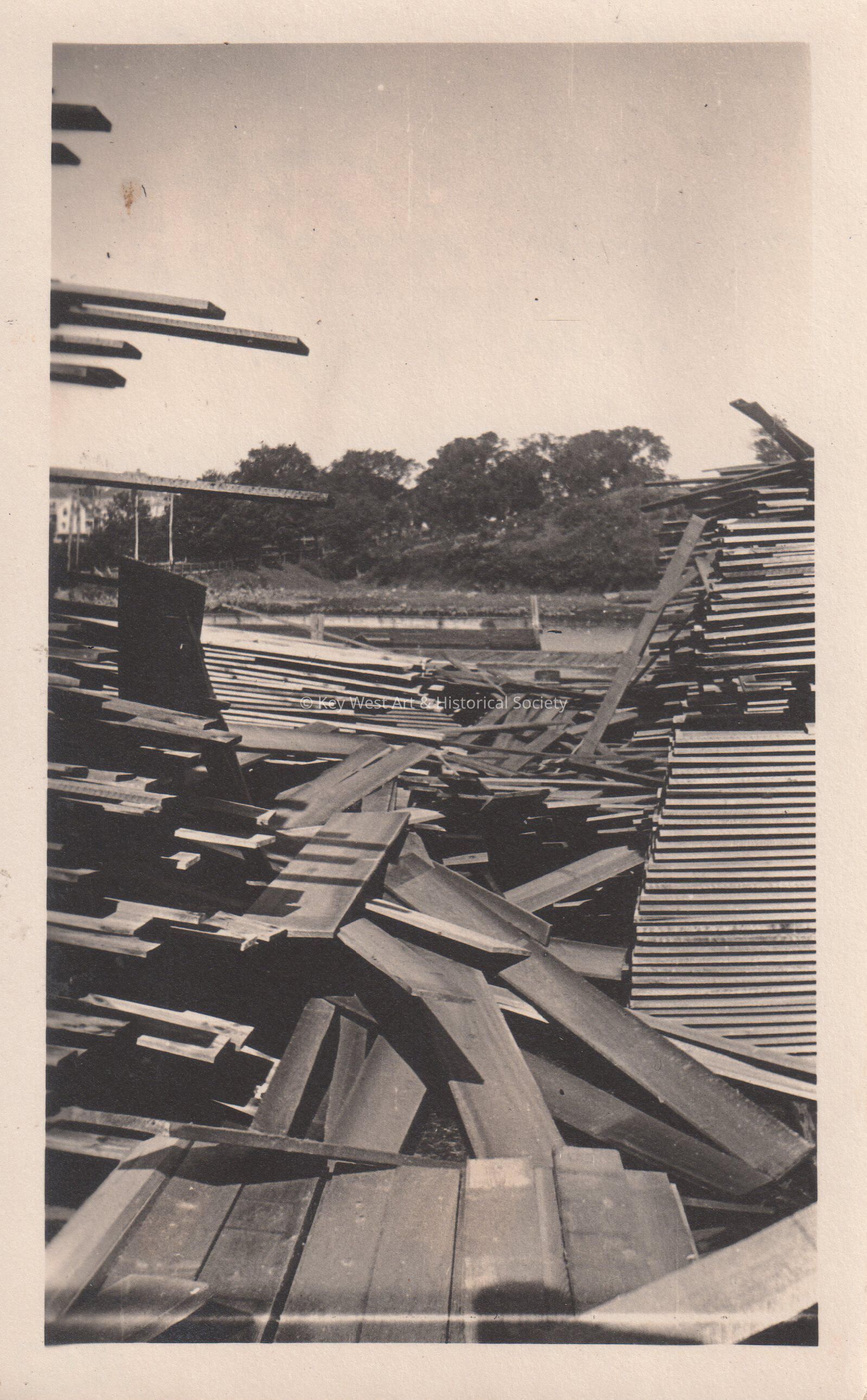 pile of lumber - "looking down between 2nd and 3rd gangway on new wharf. WW and Cyp"