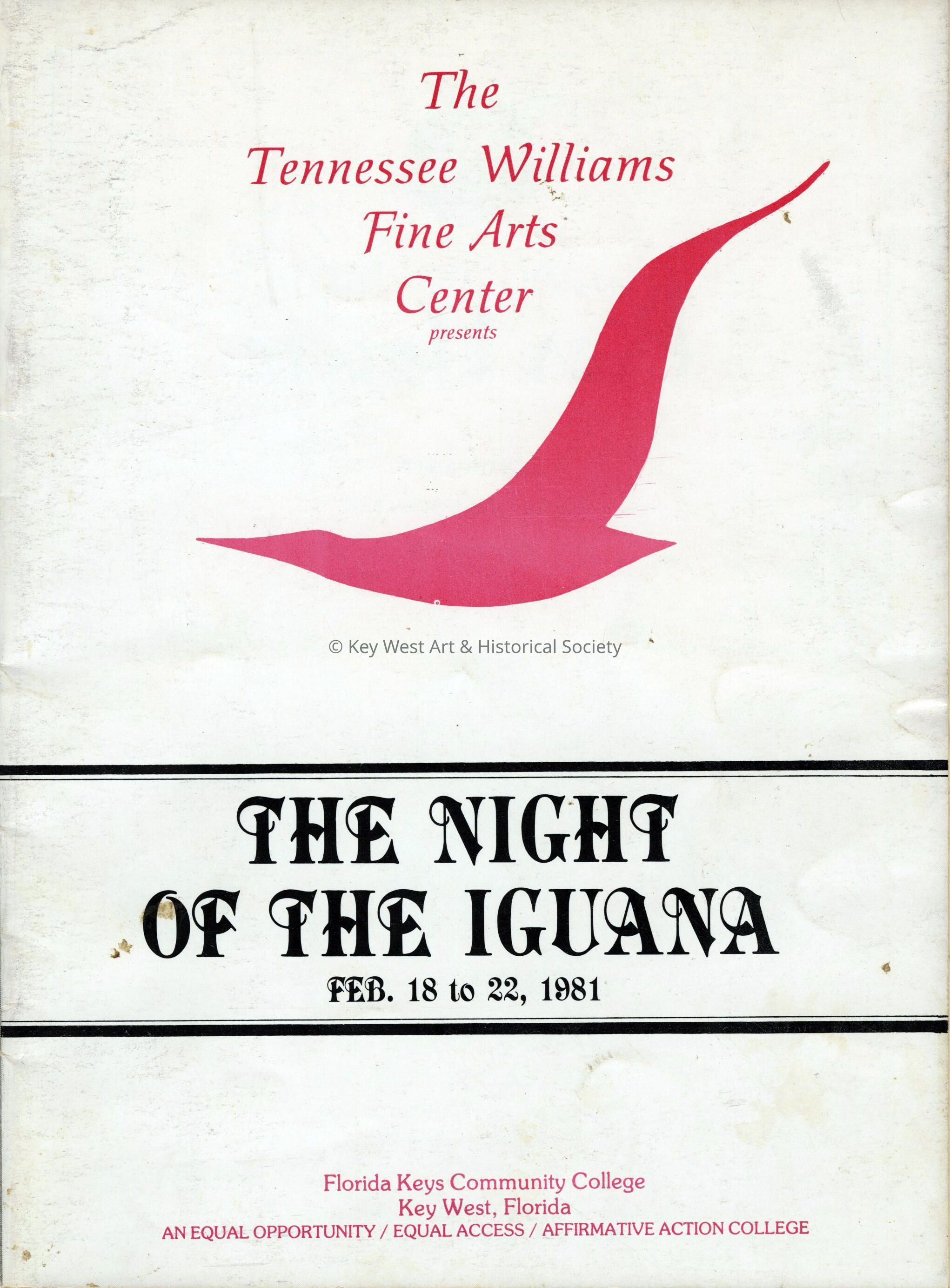 Twelve page playbill from Tennessee Williams' production of 'Night of the Iguana' at the Tennessee Williams Fine Arts Center in Key West.