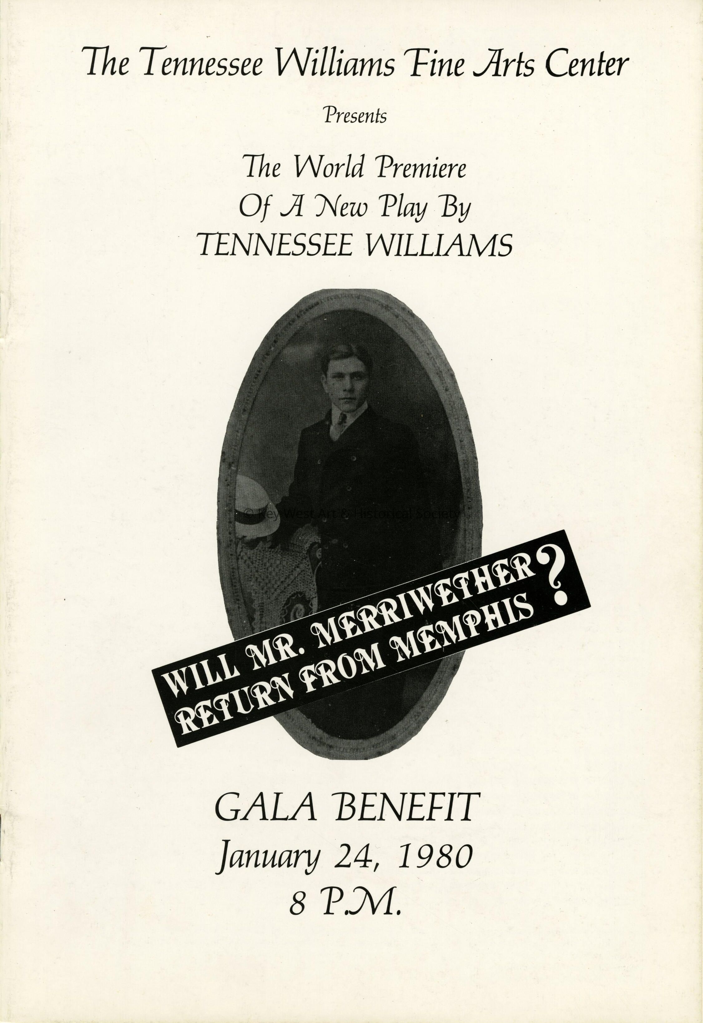 Playbill from Tennessee Williams' premier of 'Will Mr. Merriwether Return from Memphis?' at the Tennessee Williams Fine Arts Center in Key West.