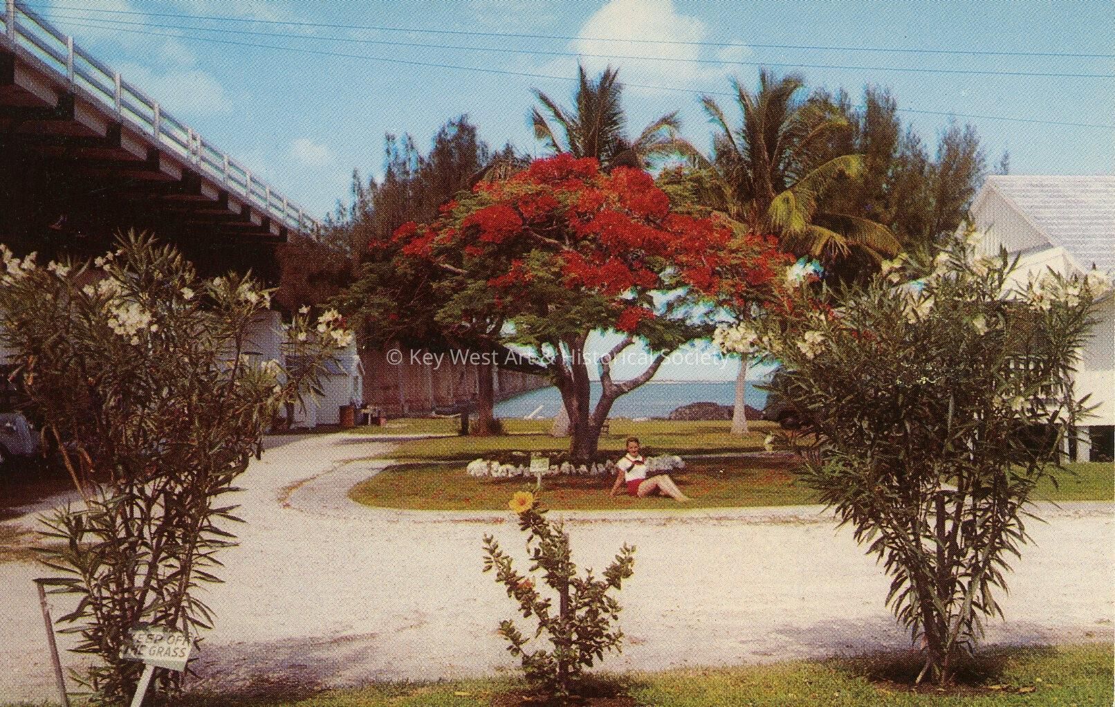 Postcard depicting a poinciana tree on Pigeon Key. Description on verso reads, 'Royal Poinciana in bloom on Pigeon Key on the Overseas Highway to Key West, Florida.'Collection