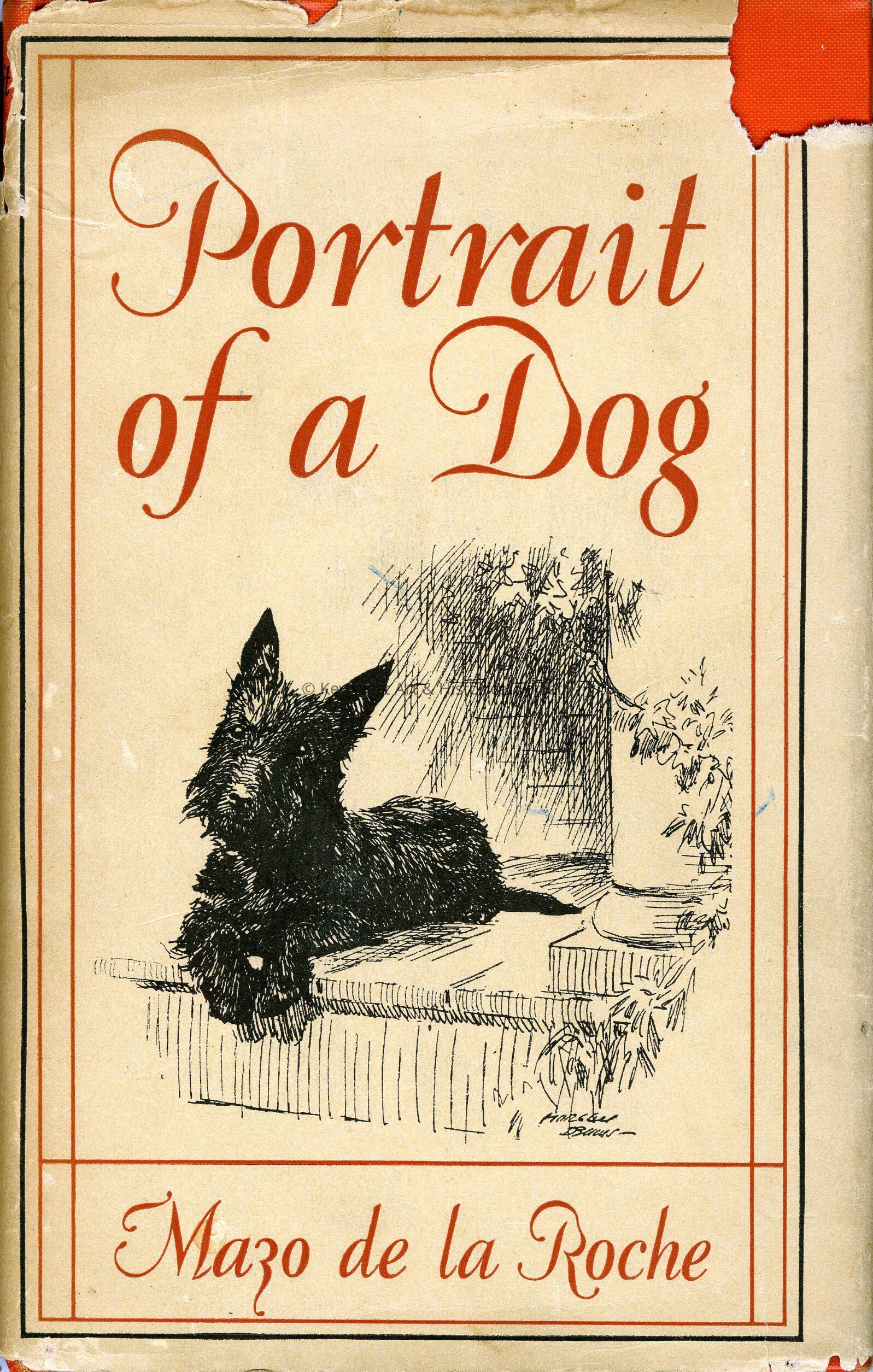 Hardcover book entitled 'Portrait of a Dog' by Mazo de la Roche with eighteen black and white illustrations by Morgan Dennis.Collection