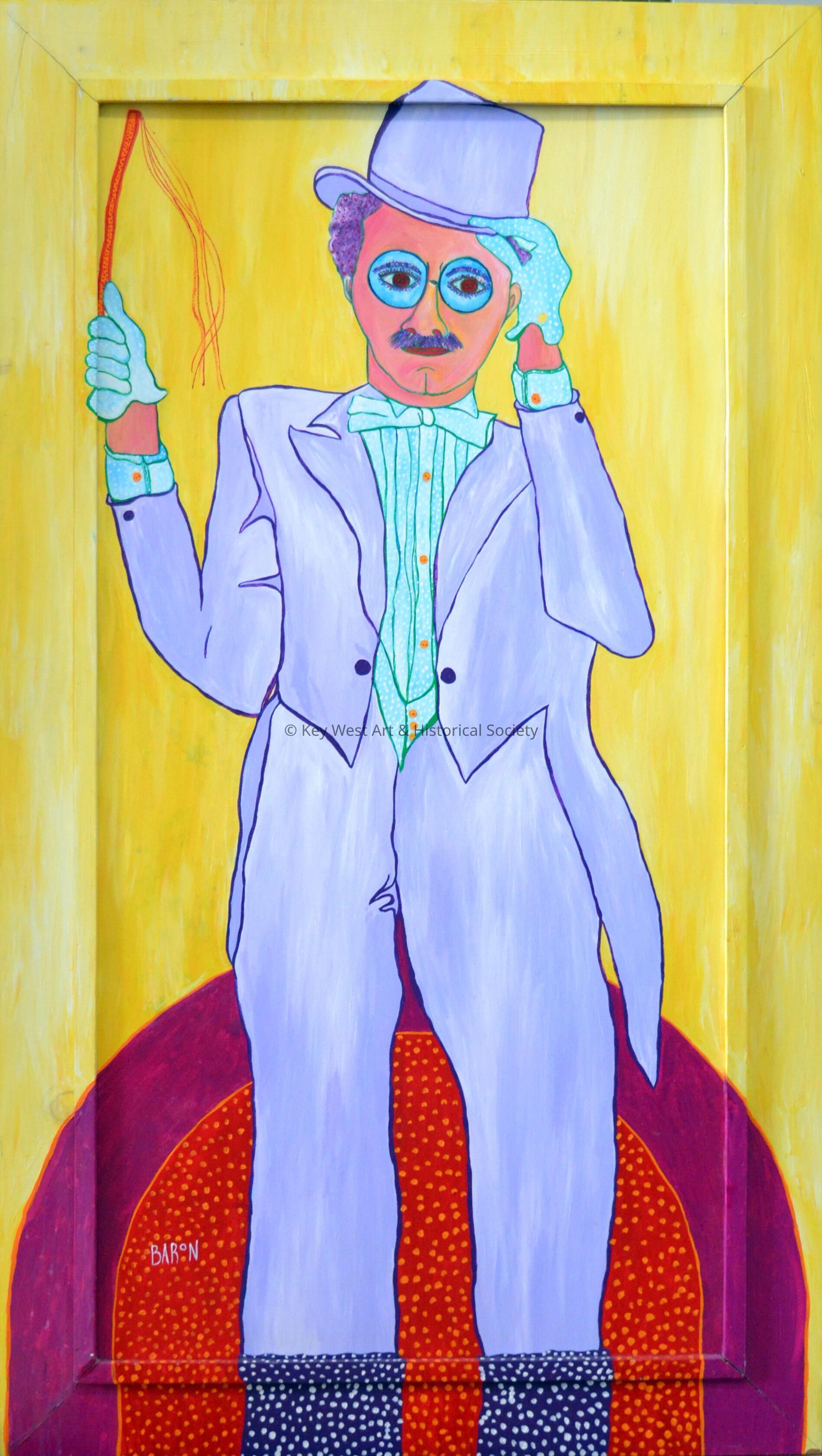 Acrylic on canvas painting by Jack Baron depicting Charlie Smythe as a circus ringleader.Type of Painting