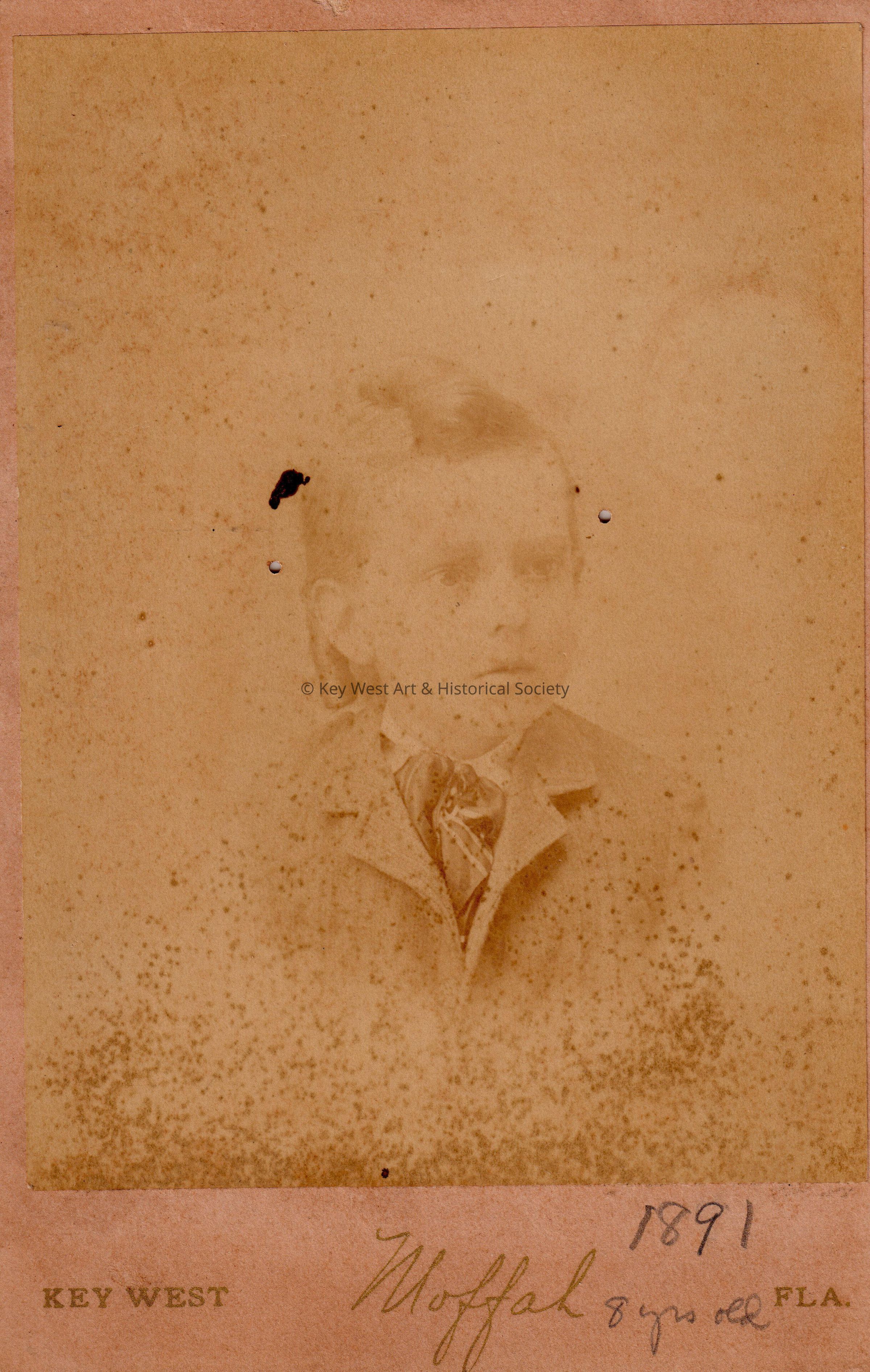 Cabinet card portrait of James Robison Hattrick Watson, born July 18, 1883. Photograph taken May 3, 1891 by Moffat Brothers Studio in Key West.