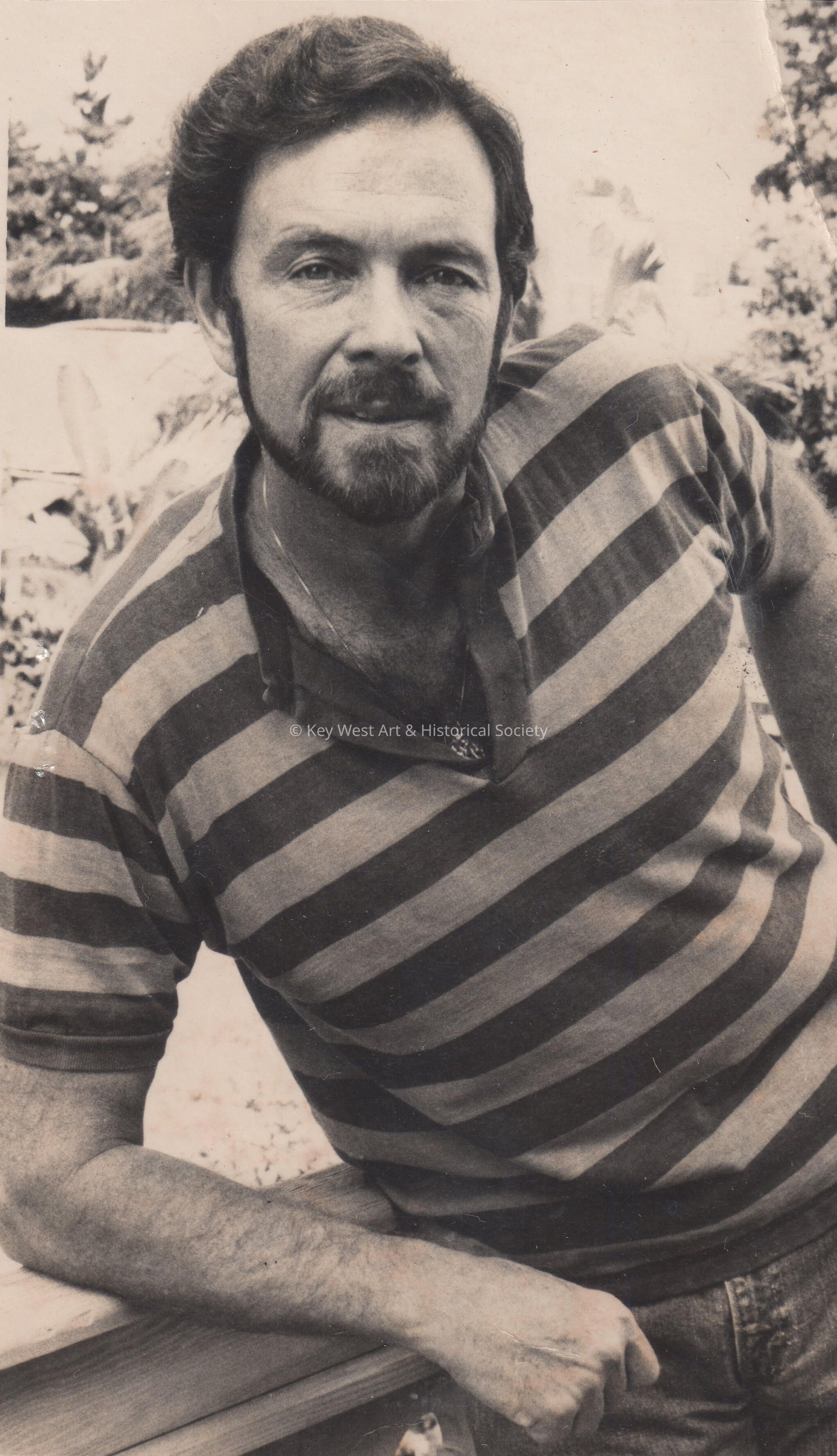 Black and white photograph of writer Philip Caputo in Key West.