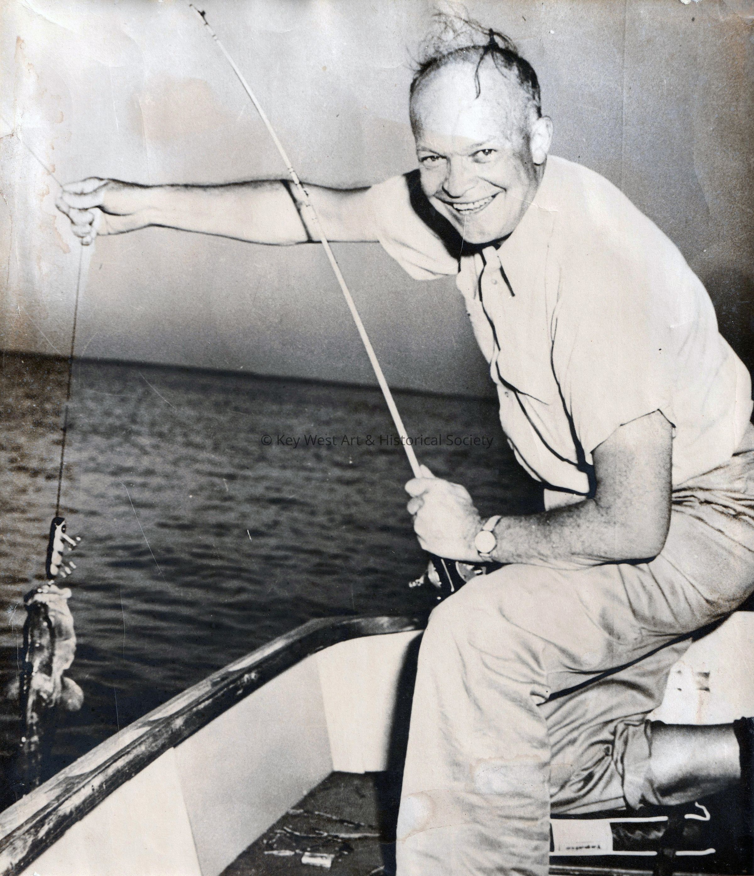 President Dwight D. Eisenhower fishing in Key West Harbor in the winter of 1946.