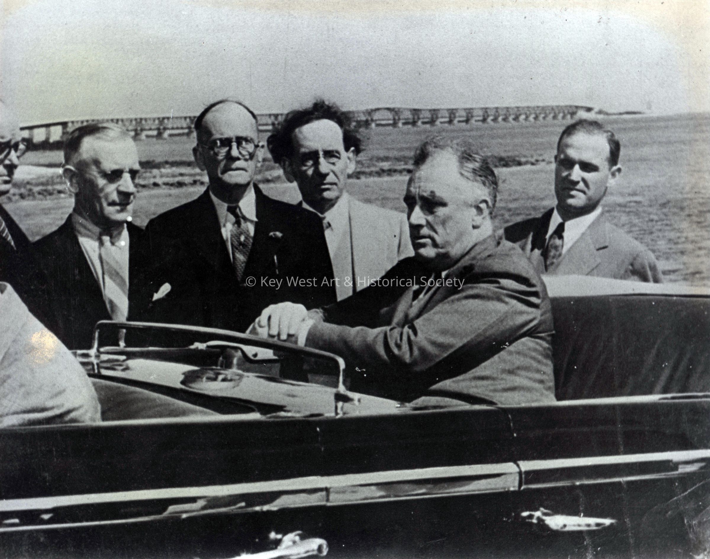 President Franklin D. Roosevelt in car on the Overseas Highway near Bahia Honda.Photograph Details