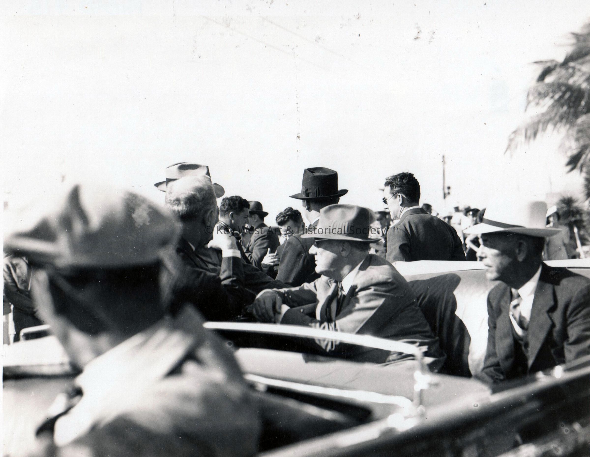 Black and white photograph of U.S. President Franklin D. Roosevelt in a motorcade.