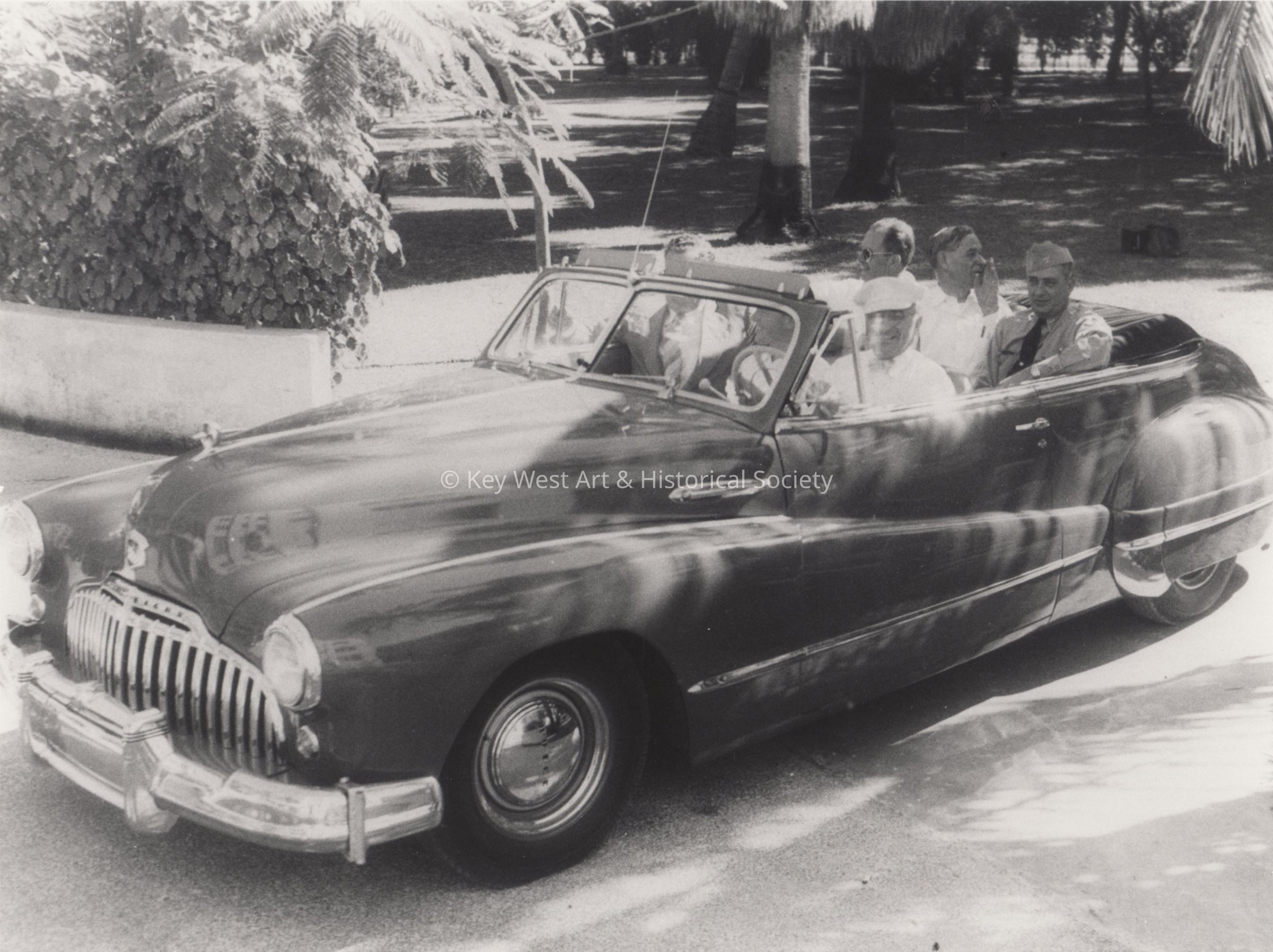 President Truman driving a car of military and other men in Key West, in 1947.Collection