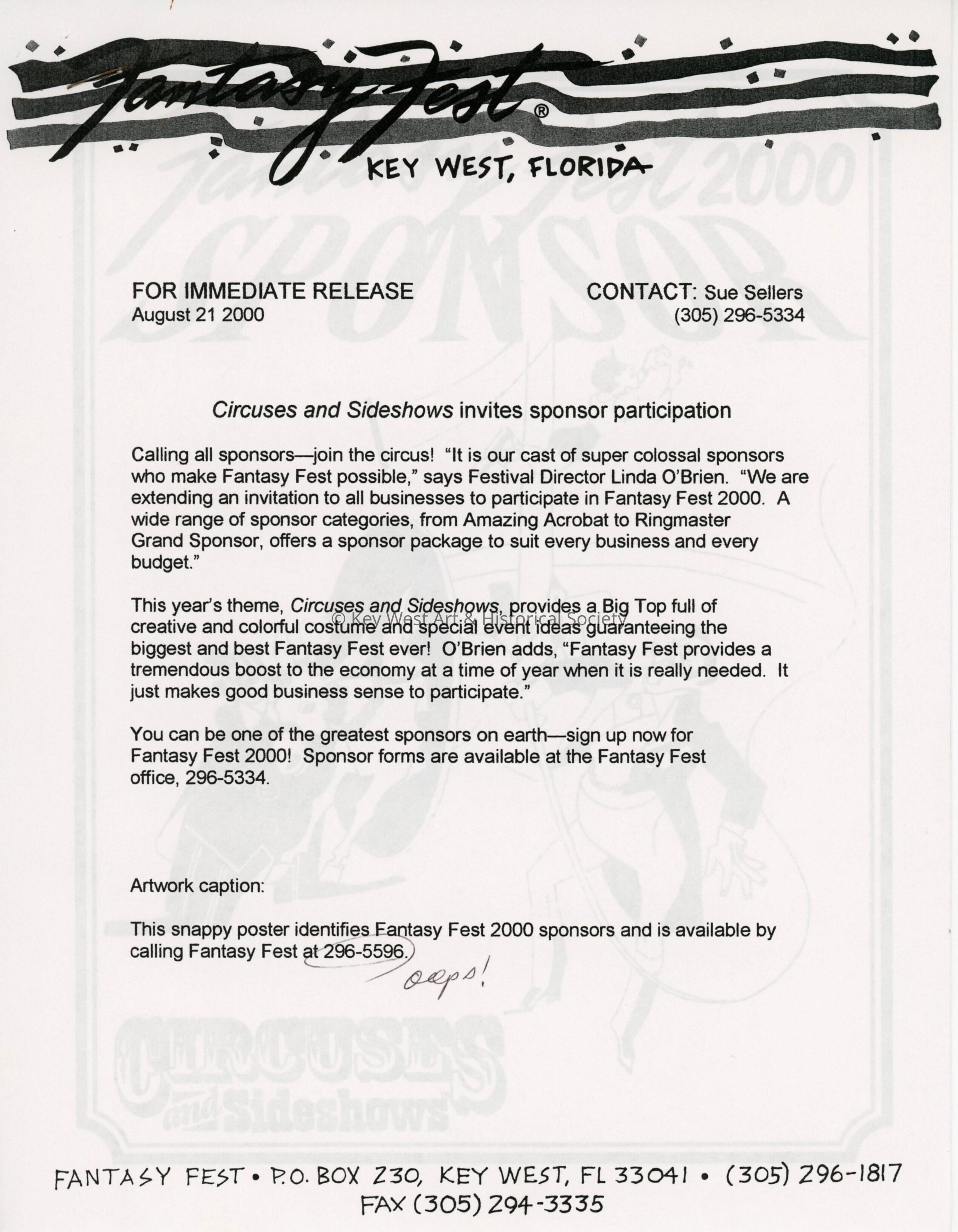 Press release about Fantasy Fest inviting sponsor participation.