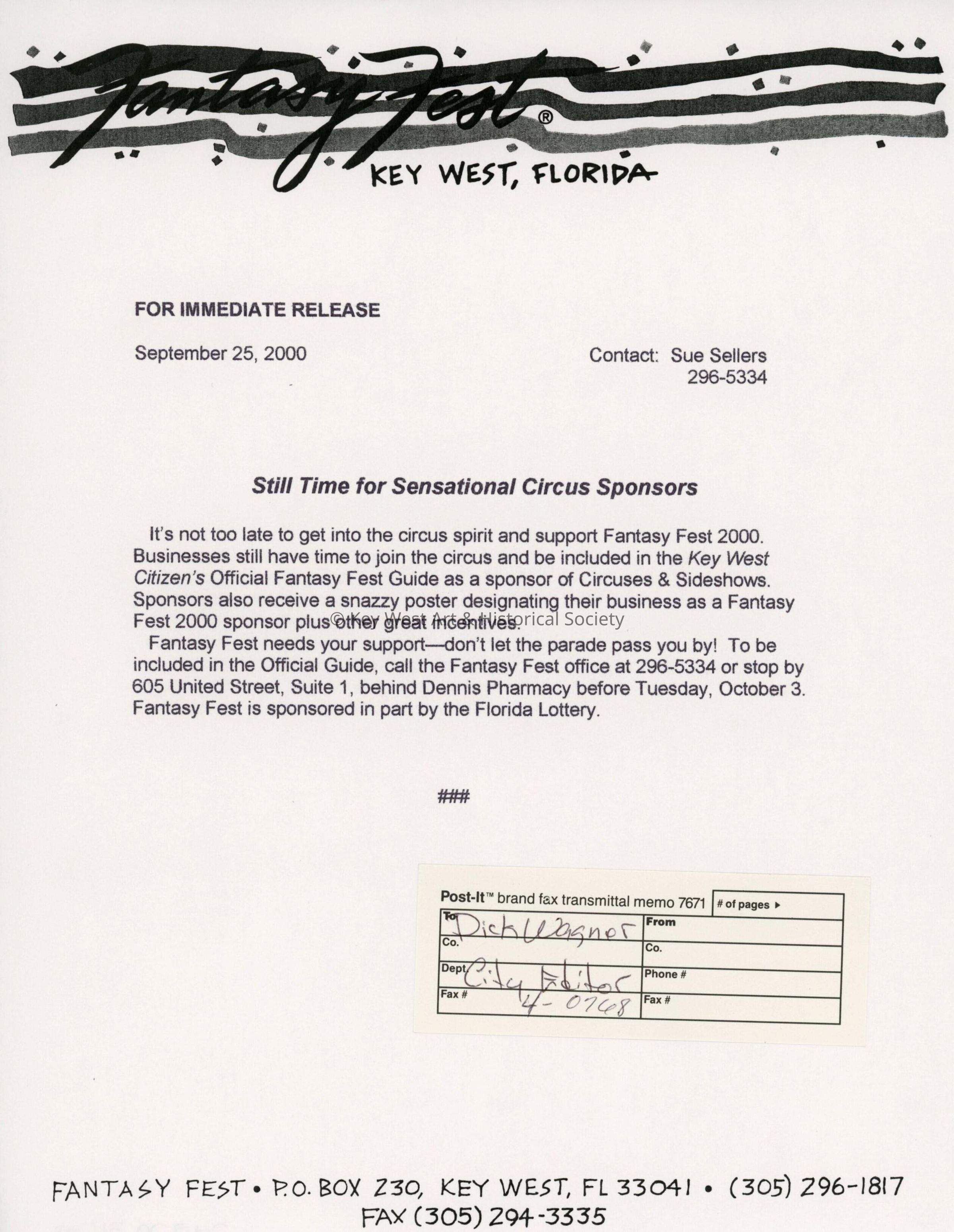 Press release about sponsors being needed.