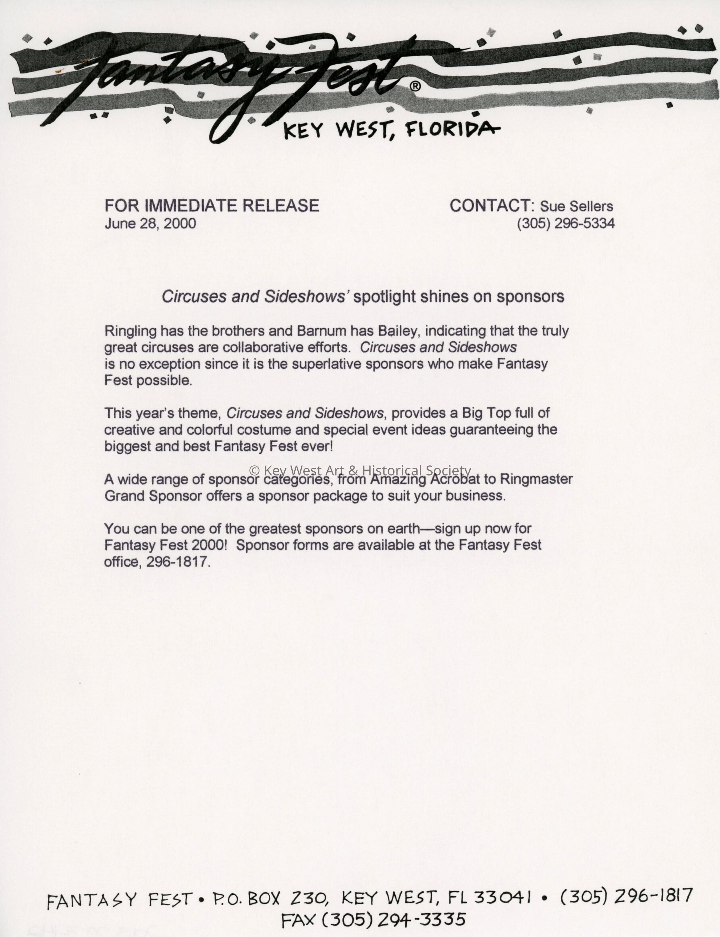 Press release asking for sponsors.