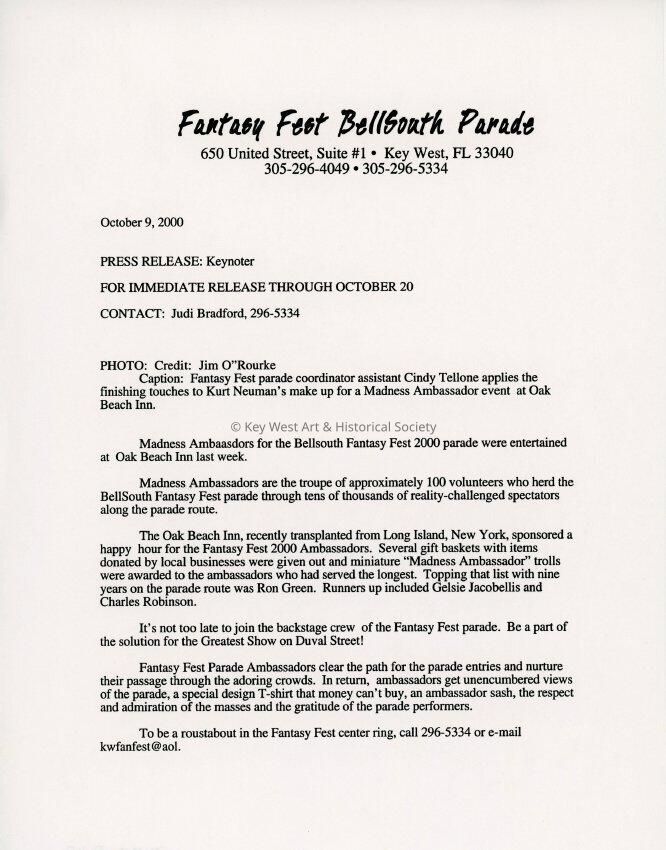 Press release for the Keynoter.