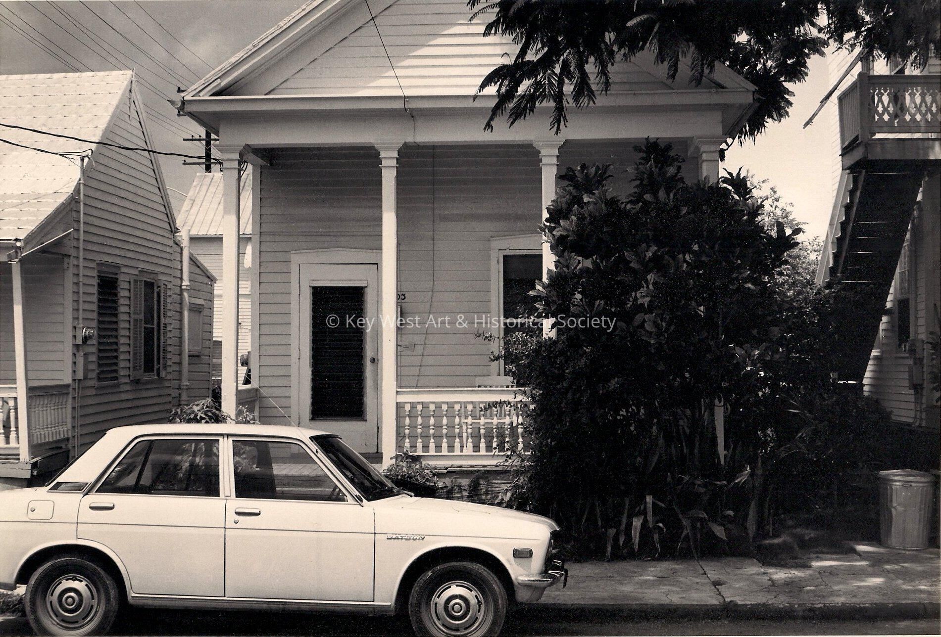 Photo showing a 1 story conch house on Flemming. Accession # 2005.21.0001.