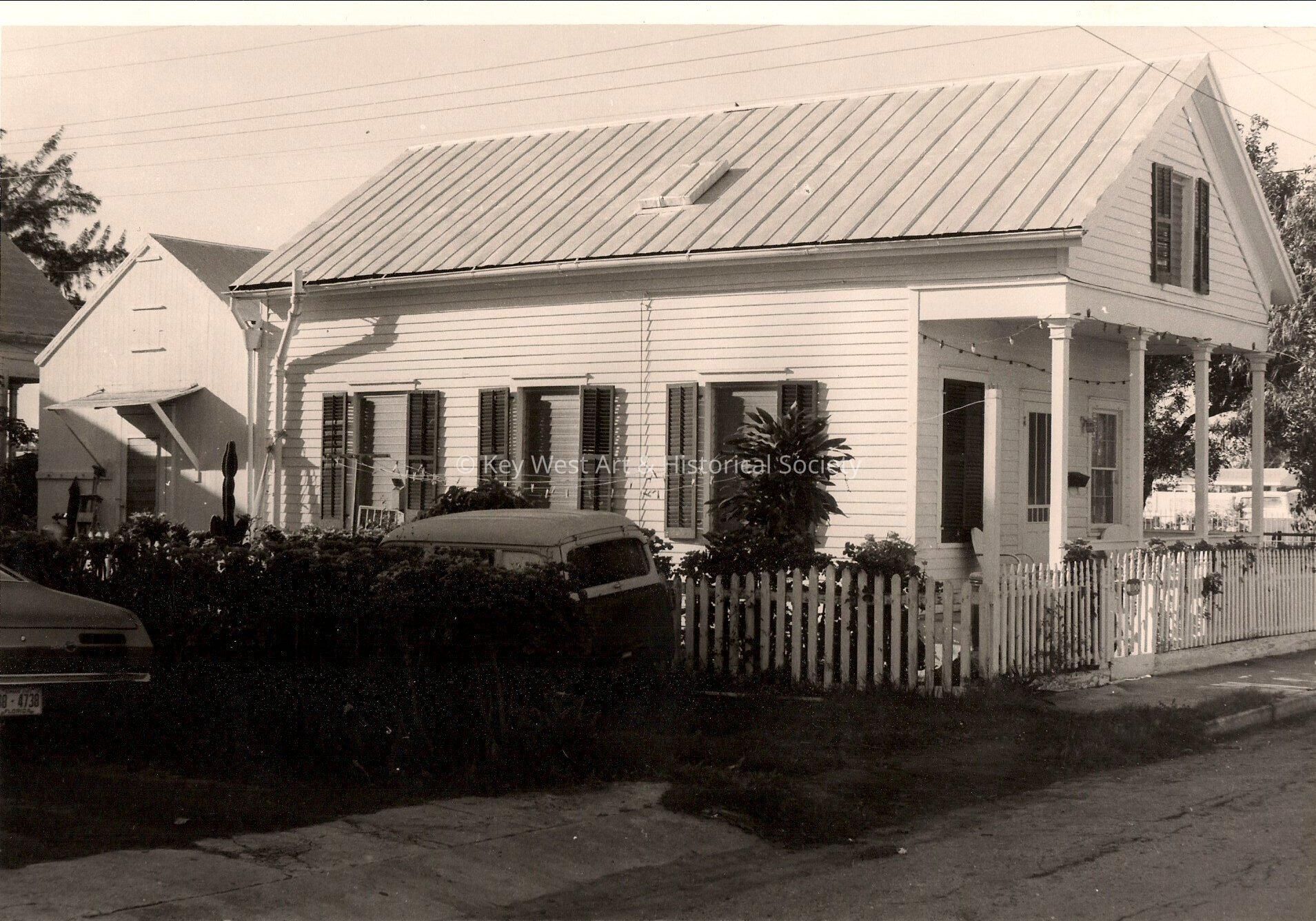 Black and white photo of a 1 1/2 story conch house; location unknown. Accession # 2005.21.0001
