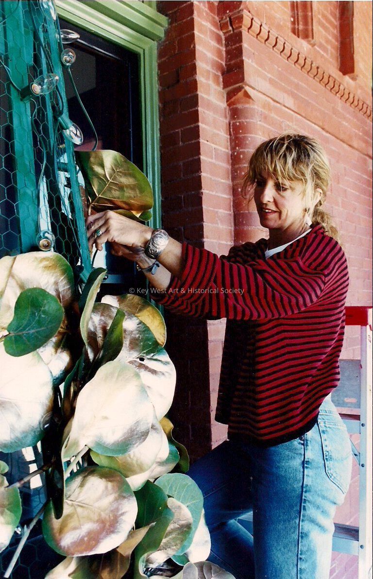 Photo showing a woman decorating a tree at the Customs House located on Front St.