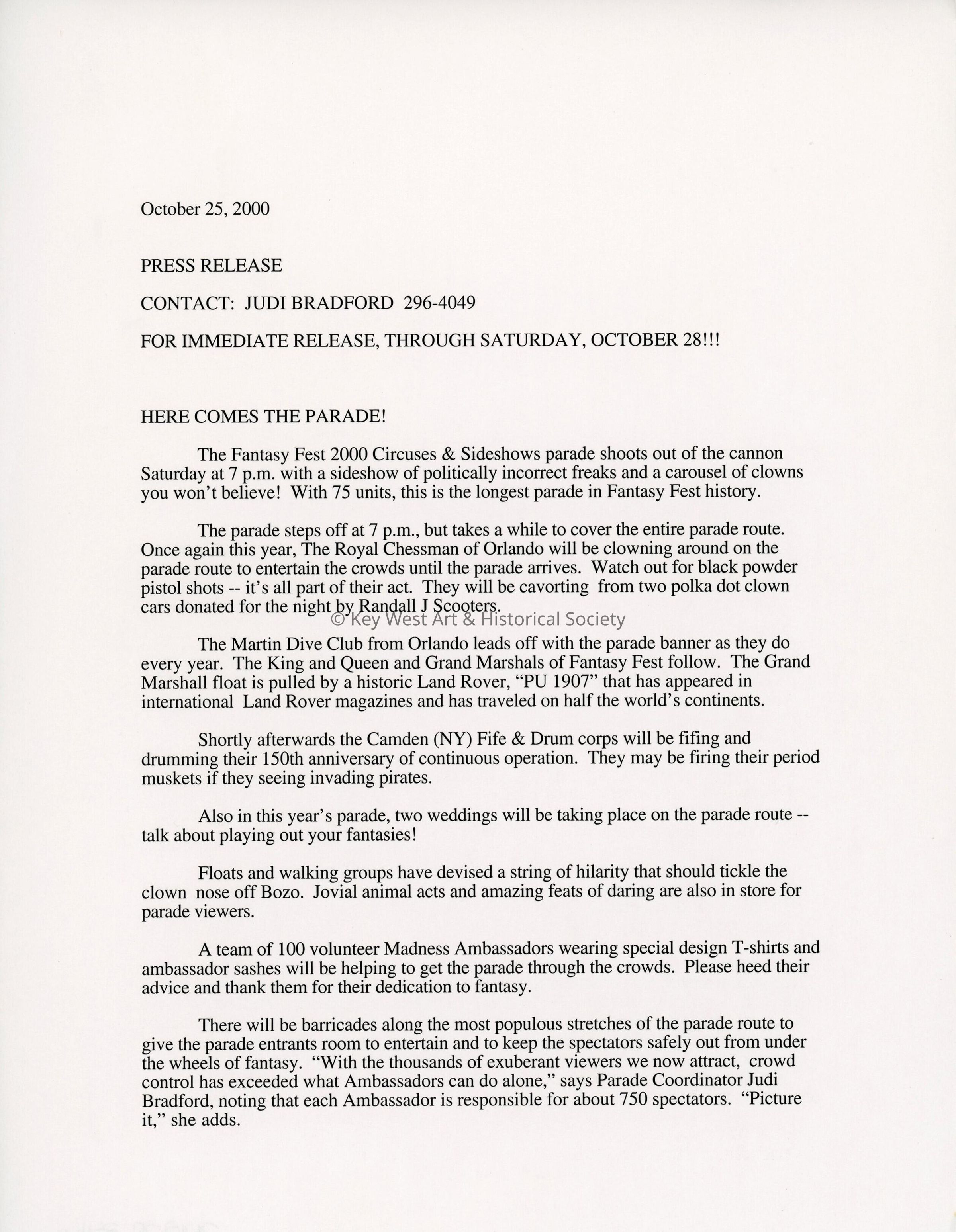 Public Service Announcement about the parade.
