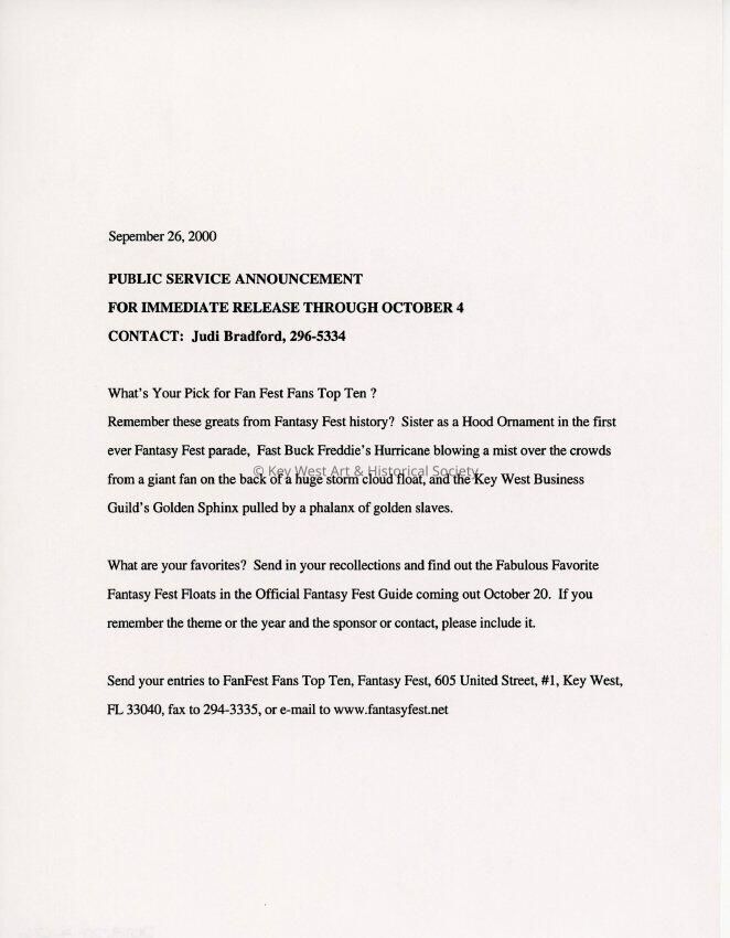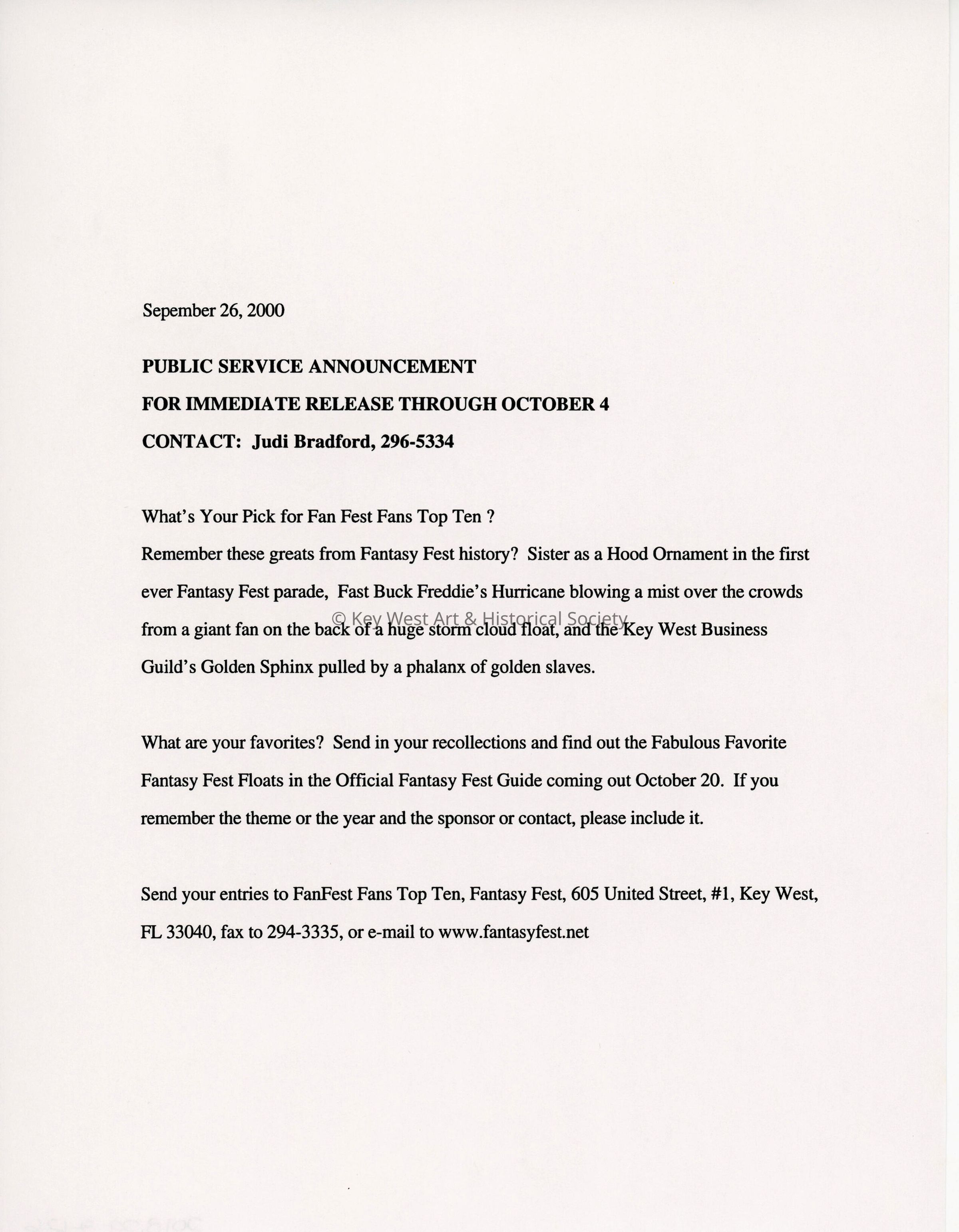 Public Service Announcement looking for prior favorite parade floats.