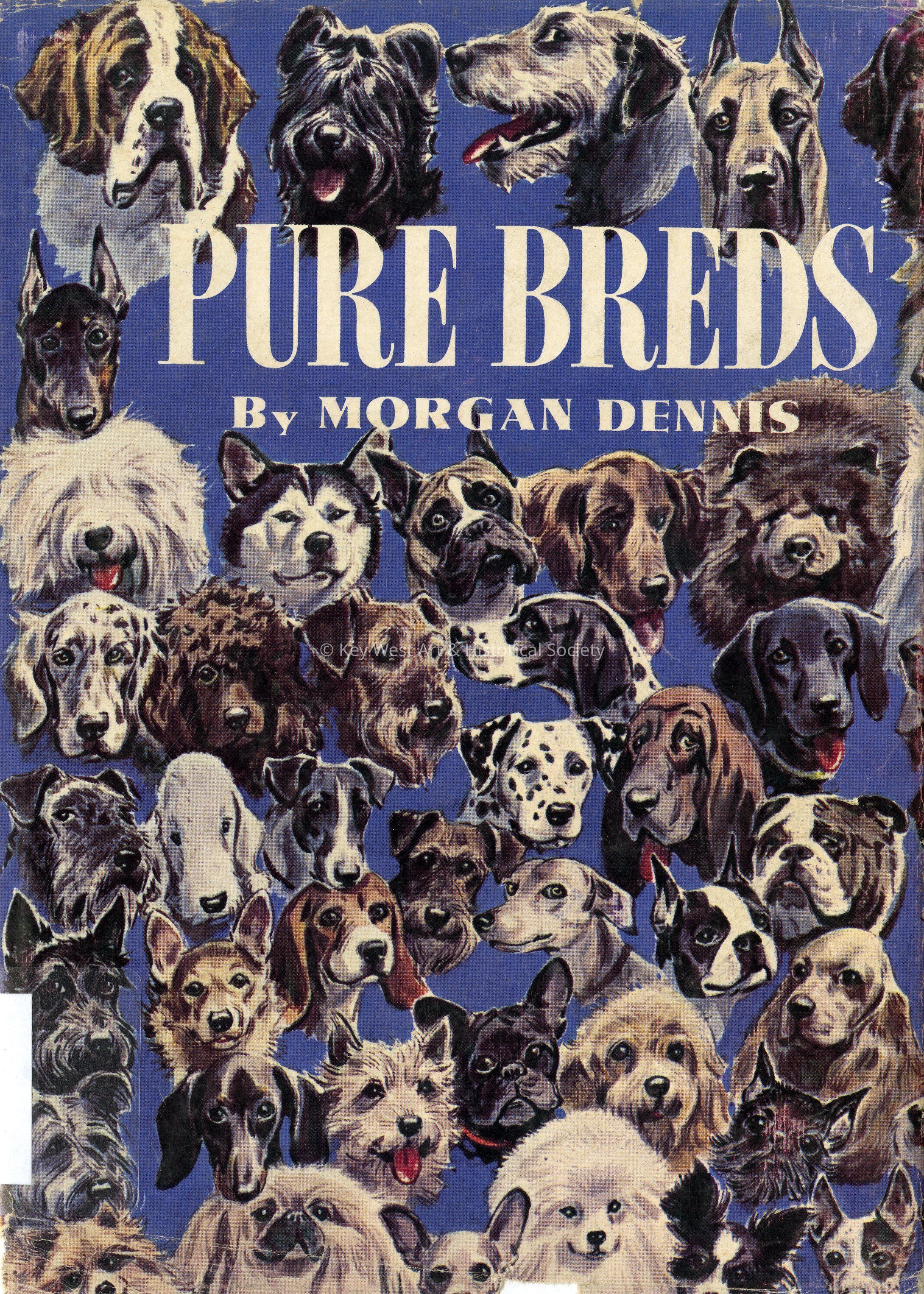 Hardcover book entitled 'Pure Breds' written and illustrated by Morgan Dennis. Signed to Louise White by Dennis with small illustration.