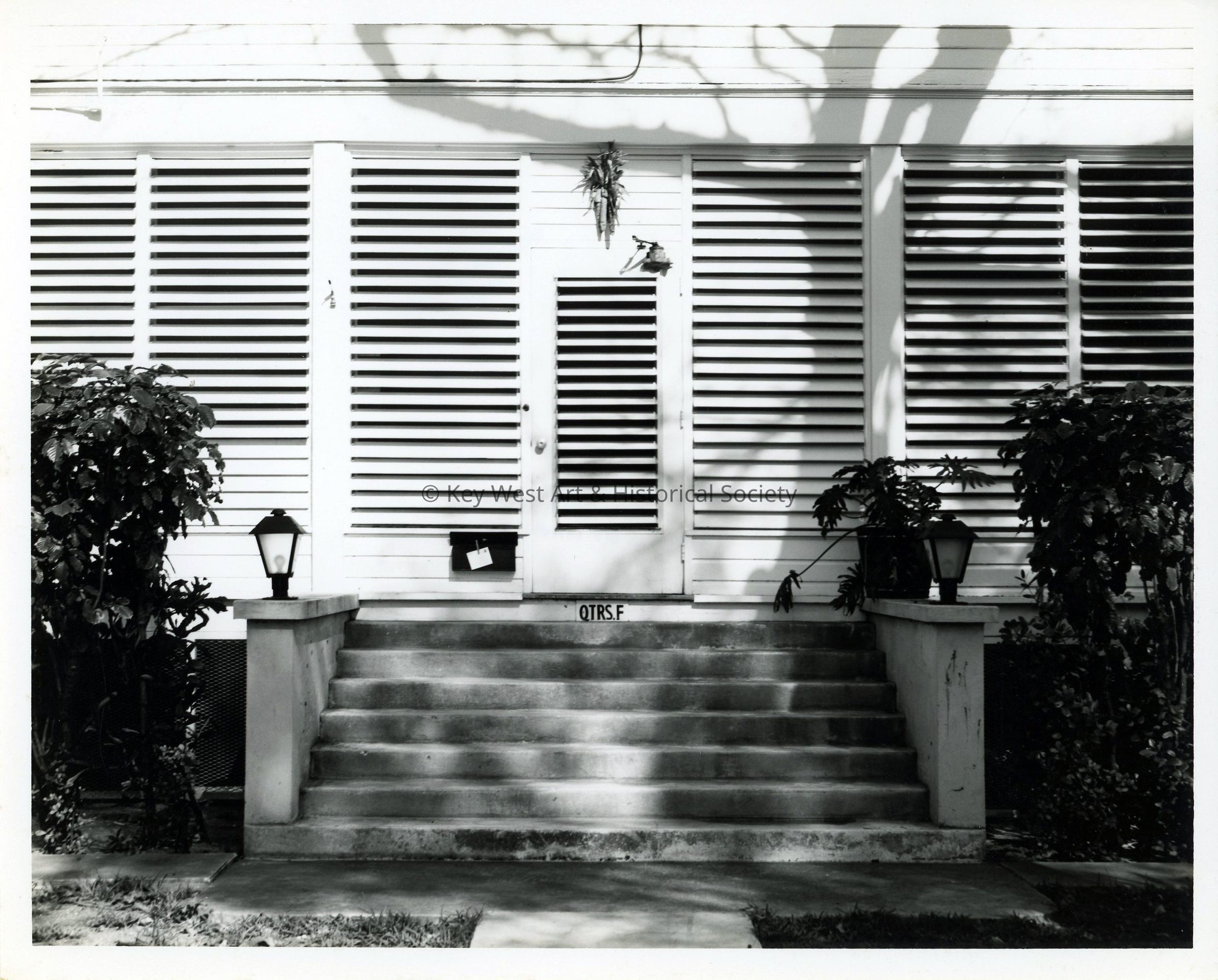 Black and white photograph of the entrance to US Navy Quarters F on Naval Station Key West.