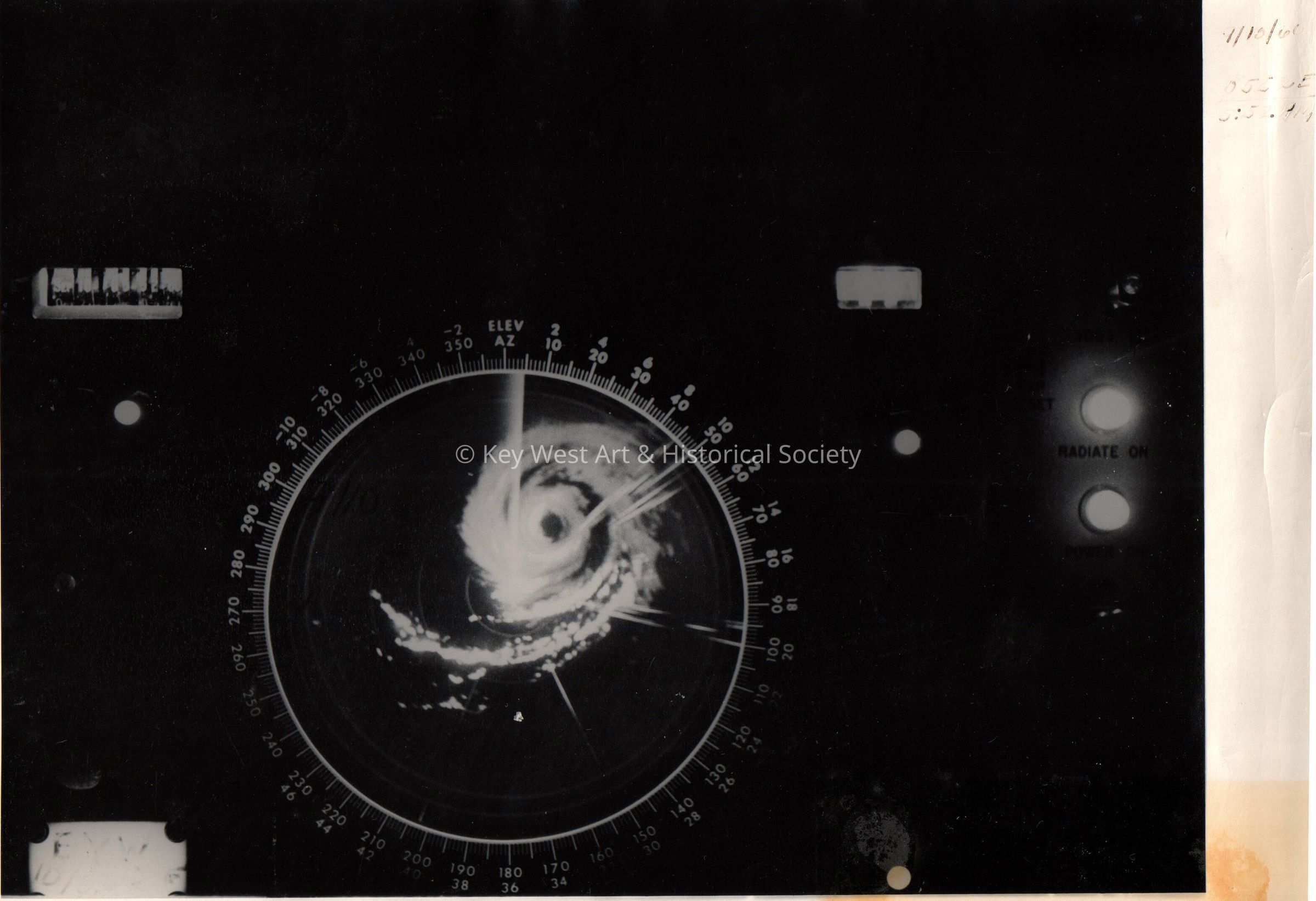 Black and white radar image of Hurricane Donna