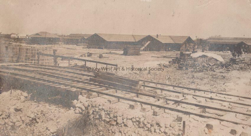 Railroad tracks and buildings, circa 1902-1912.Collection