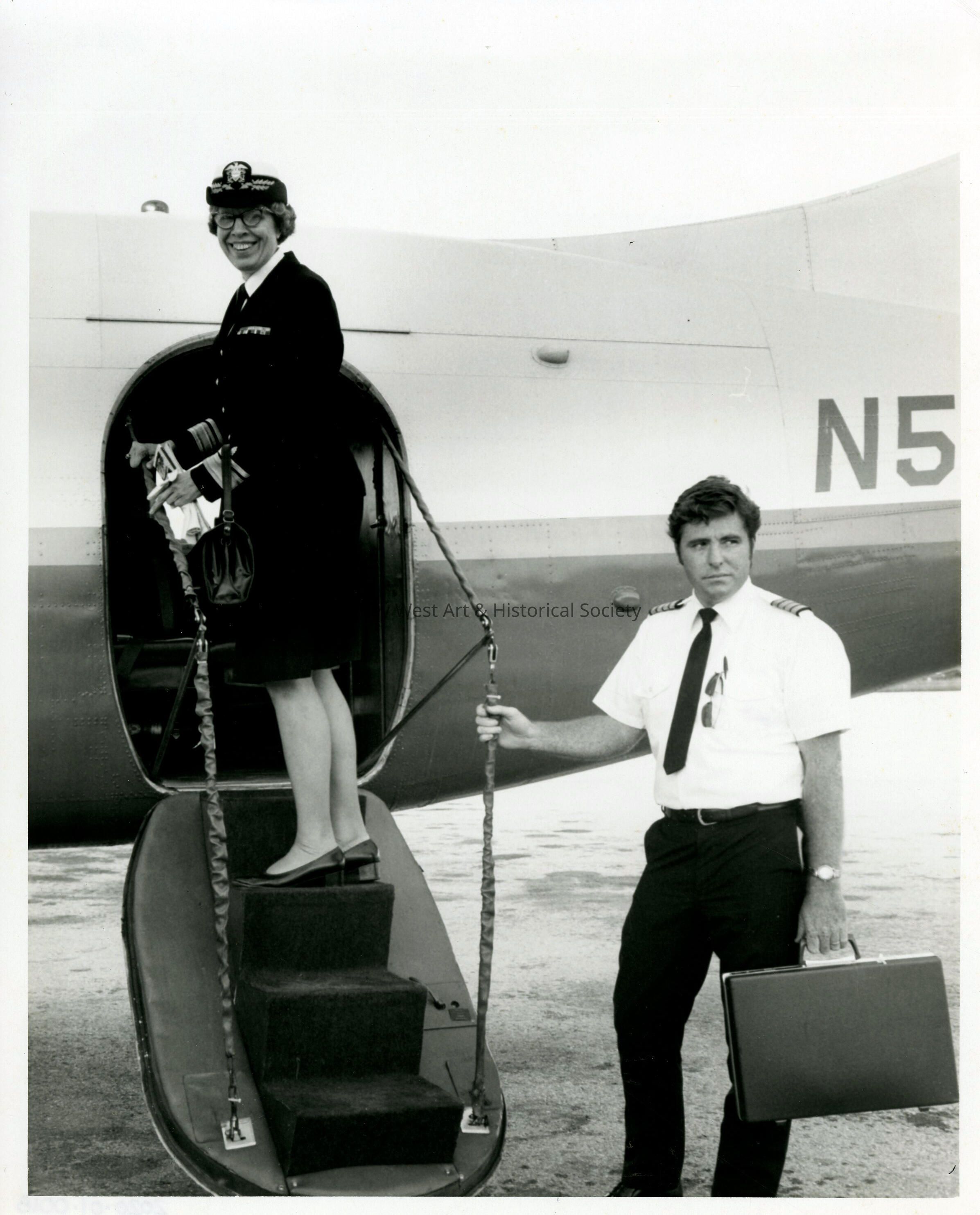 Black and white photograph of Rear Admiral Alene Duerk at Naval Air Station Key West. Duerk was the first female admiral in the U.S. Navy and was director of the U.S. Navy Nurse Corps.
